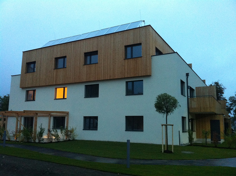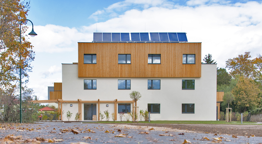 Das Gebäude ist in Passivhausqualität umgesetzt und erreicht die strengen Kriterien der Passivhauszertifizierung nach Dr. Feist. Eine umweltfreundliche Energieversor¬gung wird durch die eingebaute Pellets-Zentralheizung sichergestellt. Die Warmwasserversorgung wird durch 56 m² Solarkollektoren unterstützt,darüber hinaus ist eine PV-Anlage mit rund 5,5 kWpeak geplant. Durch den Einbau wassersparender Armaturen und Spülkästen kann der Wasserverbrauch deutlich reduziert werden.