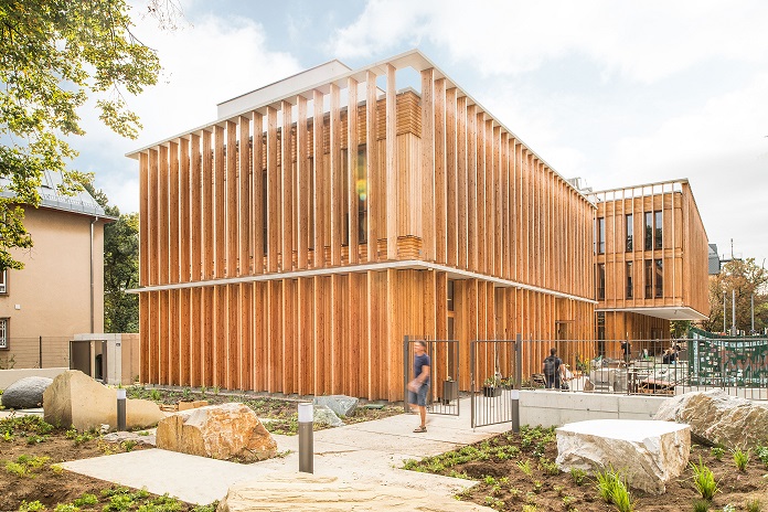 Der Neubau besteht aus einem rechtwinkelig angelegten Bau aus drei Obergeschossen im Bereich Peter-Jordan-Straße/ Dänenstraße und einem zweigeschossigen Teil zur Nedergasse im Norden. Ein partiell abgesenkter Hof bringt Tageslicht in eines der beiden Untergeschosse und ermöglicht so die Anordnung von weiteren Lern- und Aufenthaltsräumen auf dem „begrenzten“ Grundstück. Das neue Tüwi beherbergt drei Institute mit 65 Mitarbeitern, Büros für die Hochschülerschaft, die Mineraliensammlung mit Übungsraum, Lehr- und Arbeitsräume, eine Mensa, das selbst verwaltete Lokal „Tüwi“ mit Gastgarten und Hofladen, sowsowie einen Hörsaal mit einer Auslastungsmöglichkeit von bis zu 400 Personen – das erste Audimax für die BOKU.