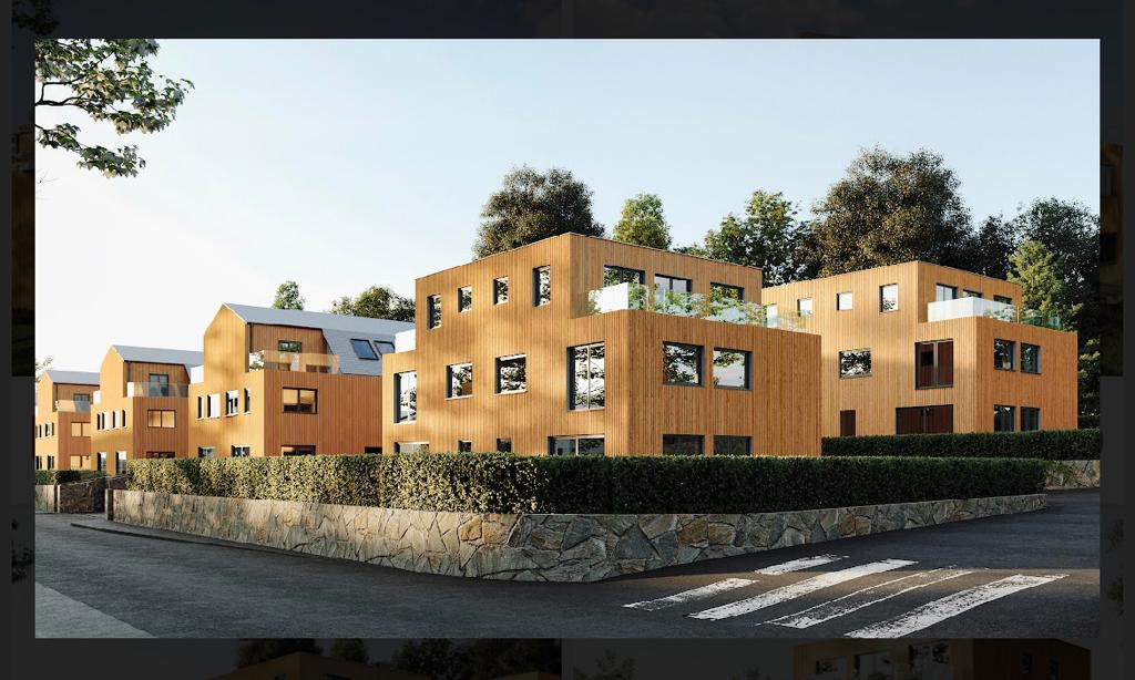 Mit seinen12 Doppelhäusern, mit hochwertigen Holzfassaden, scheint es als Teil der Natur zu sein.
