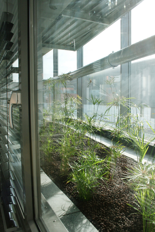 Die Gesamtliegenschaft weist eine Kammstruktur mit 5 südorientierten Zeilen auf. Das bestehende Gebäude TECHbase mit 2 in etwa südorientierten Zeilen bildet den Beginn der Bebauung. Das ENERGYbase steht im nördlichsten Bereich der Gesamtliegenschaft. Die Abstände und Höhen der zukünftigen weiteren Gebäude wurden mit Hinblick auf die mit PV-Modulen ausgestatteten Südfassade des ENERGYbase vordefiniert. Das ENERGYbase hat ein erhöhtes Erdgeschoss, vier Obergeschosse und ein Tiefgeschoss. Durch das erhöhte Erdgeschoss ergibt sich ein großzügiges Foyer mit eineinhalbfacher Geschoßhöhe. Die Südfassade ist mit 400m2 PV-Modulen ausgestattet, die mit einer Neigung von etwa 30° als Sonnenschutz im Sommer dienen und zu einer charakteristisch gefalteten Fassade führen. An der Westfassade befinden sich die von außen deutlich sichtbaren Pflanzenpuffer, die an den Obergeschoßen angebracht sind und zur Regulierung der Raumluftfeuchte beitragen. Auf diese Art und Weise entsteht ein Gebäude mit hohem Wiedererkennungswert.