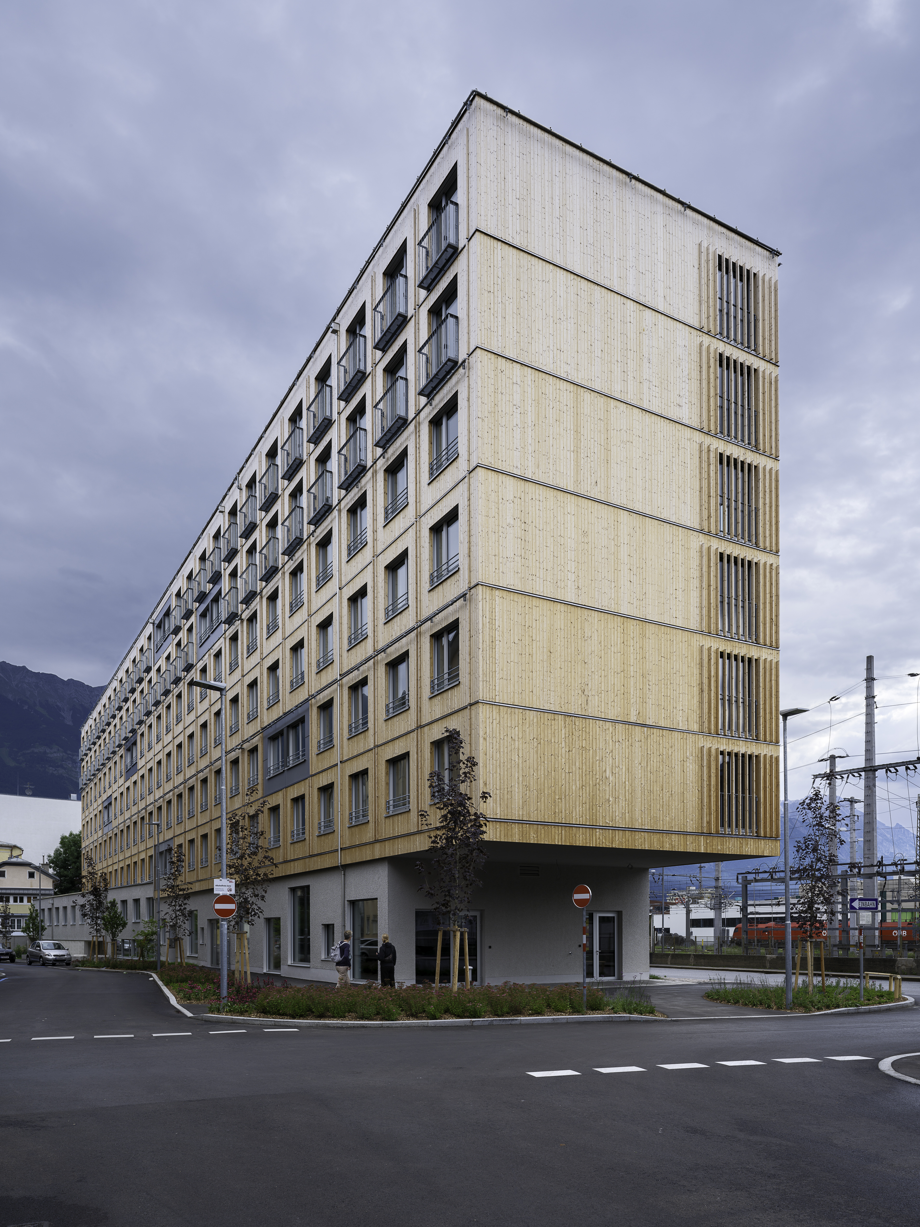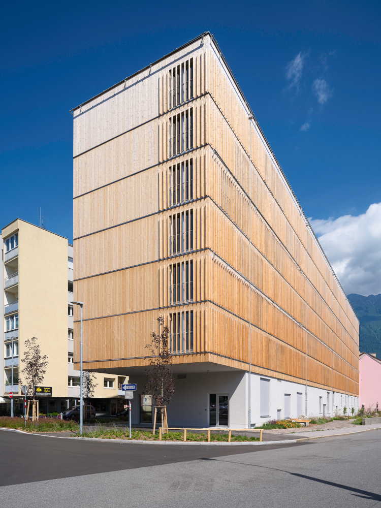 Das Objekt, Gästehaus für Studierende und Lehrende, Karmelitergasse bietet auf einer Nutzfläche von 4860 m² Platz für 173 Studierende in 159 Ein- bzw. Zweizimmereinheiten in nachhaltiger Holzhybridbauweise. Unter dem Motto „passive houses for active students“ wird an den Betreiber OeAD student housing ein architektonisches und ökologisches Highlight für den Hochschulstandort Inns-bruck-Tirol übergeben. Die Holzfassade konnte mittels einer automatischen Fassadensprinkleranlage umgesetzt werden. Die Wärme für die Raumheizung wird mittels Grundwasserwärmepumpe generiert. Die Warmwasserbereitung wird mittels Exergiemaschine zur Verfügung gestellt. Zur Vermeidung der sommerlichen Überwärmung in den Wohneinheiten trägt ein außenliegender Sonnenschutz bei.