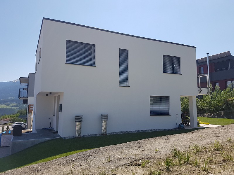Einfamilienhaus unterkellert mit Carport und Lager. Es verfügt über eine Luft-Wasser Wärmepumpe mit kontrollierter Wohnraumlüftung und Kunststoff-Alu Fenster mit Dreifachverglasung.
