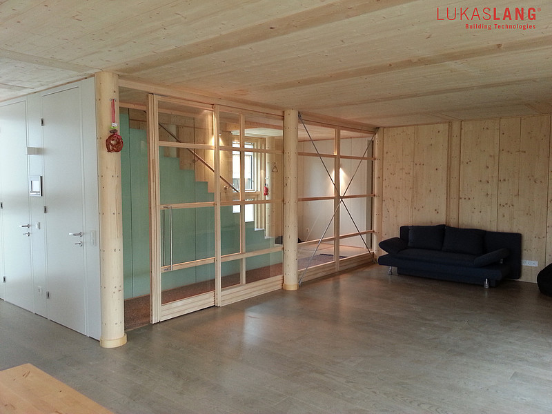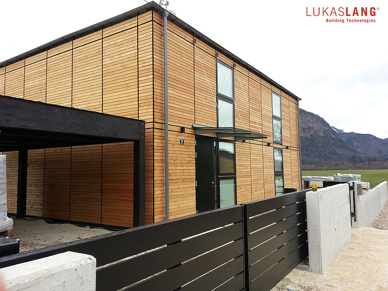 Es handelt sich um ein Einfamilienhaus in "Lukas Lang" Holzskelettbauweise mit 3 Schlafzimmer und 2 Bädern im Obergeschoss, Wohn-Essbereich im Erdgeschoss, Kellergeschoss in Massivbauweise. Das Gebäude wurde ausgeführt mit Flachdach und Holzelementfassade.