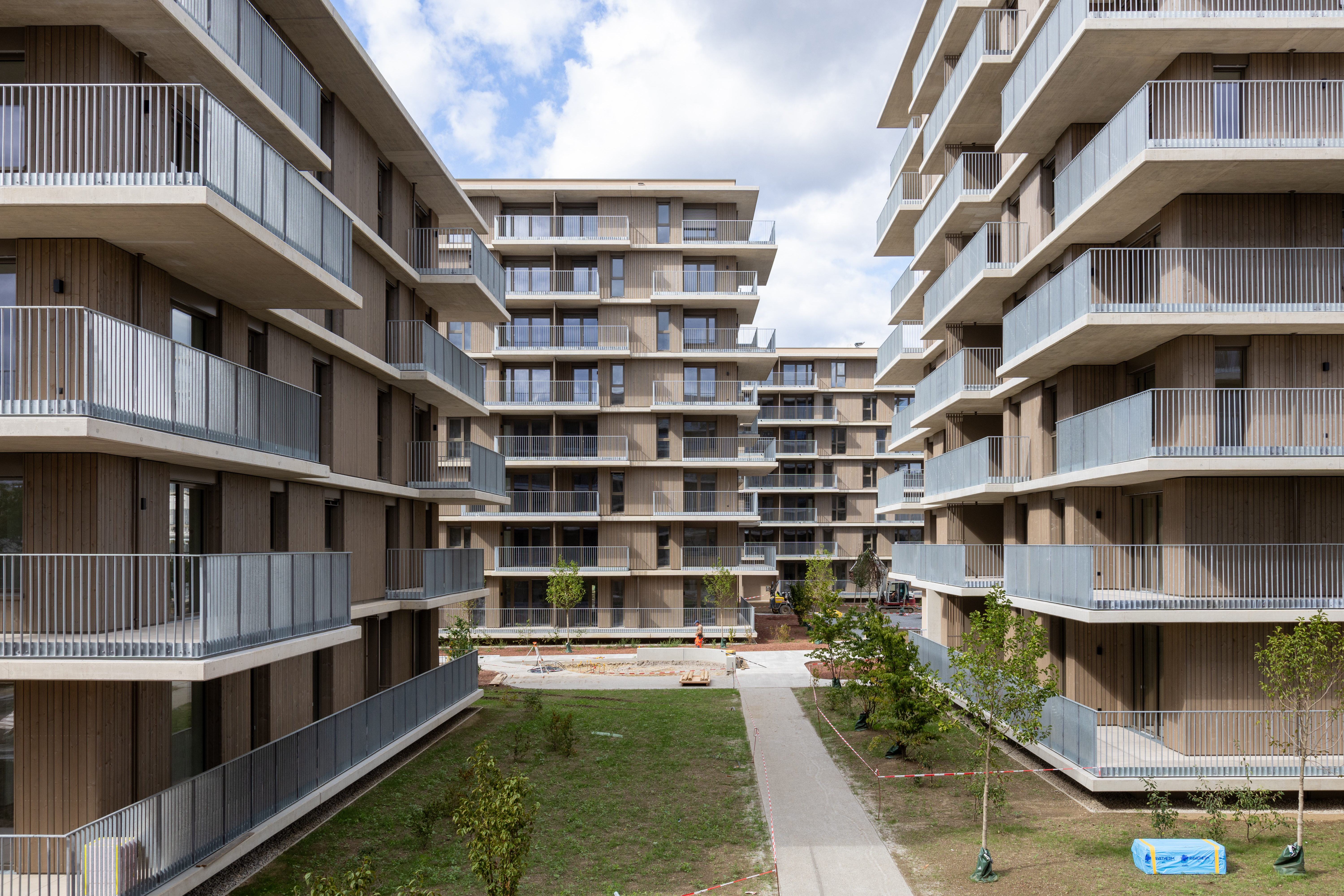 Auf historischem Boden, dem Areal der ehemaligen Kirchner-Kaserne, ist ein autofreies Wohnquartier inmitten einer 5,7 ha großen Parklandschaft entstanden – ein urbanes Dorf für Land- und Stadtcharaktere. Zentral bei den Gebäuden auf Bauplatz B (Haus F,G,H,I,K) sind die Sichtachsen ins Grüne, der fließende Übergang zwischen innen und außen und die großzügigen Frei- und Gemeinschaftsflächen mit Fuß- und Radwegen sowie unterschiedlichen Freizeitangeboten für Jung und Alt.