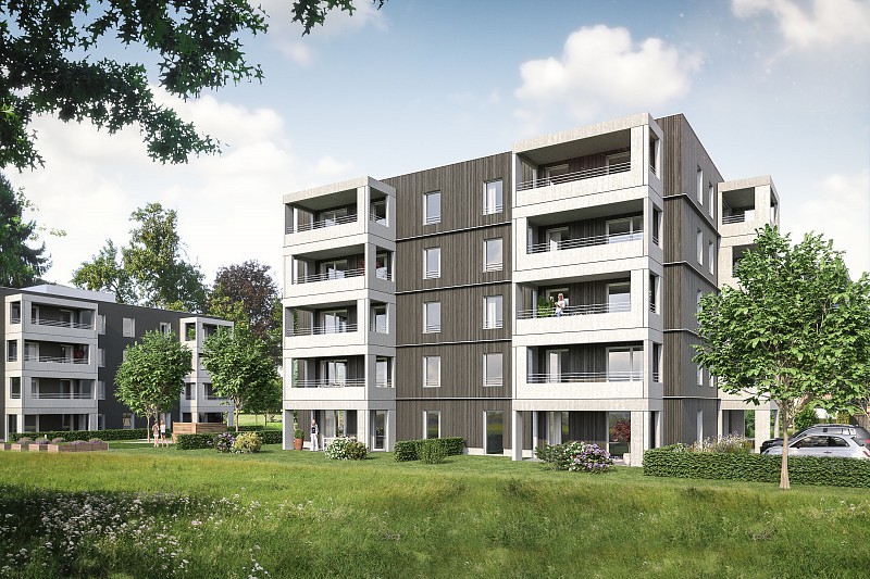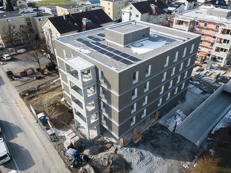 In der Wolfurter Lerchenstraße errichtete die Wohnbauselbsthilfe in enger Abstimmung mit der Rhomberg Bau GmbH und der Gemeinde Wolfurt zwei Mehrfamilienhäuser. Eines wurde in Massivbauweise ausgeführt, das andere in Holzbauweise. Beide Gebäude erreichen klimaaktiv GOLD Standard.