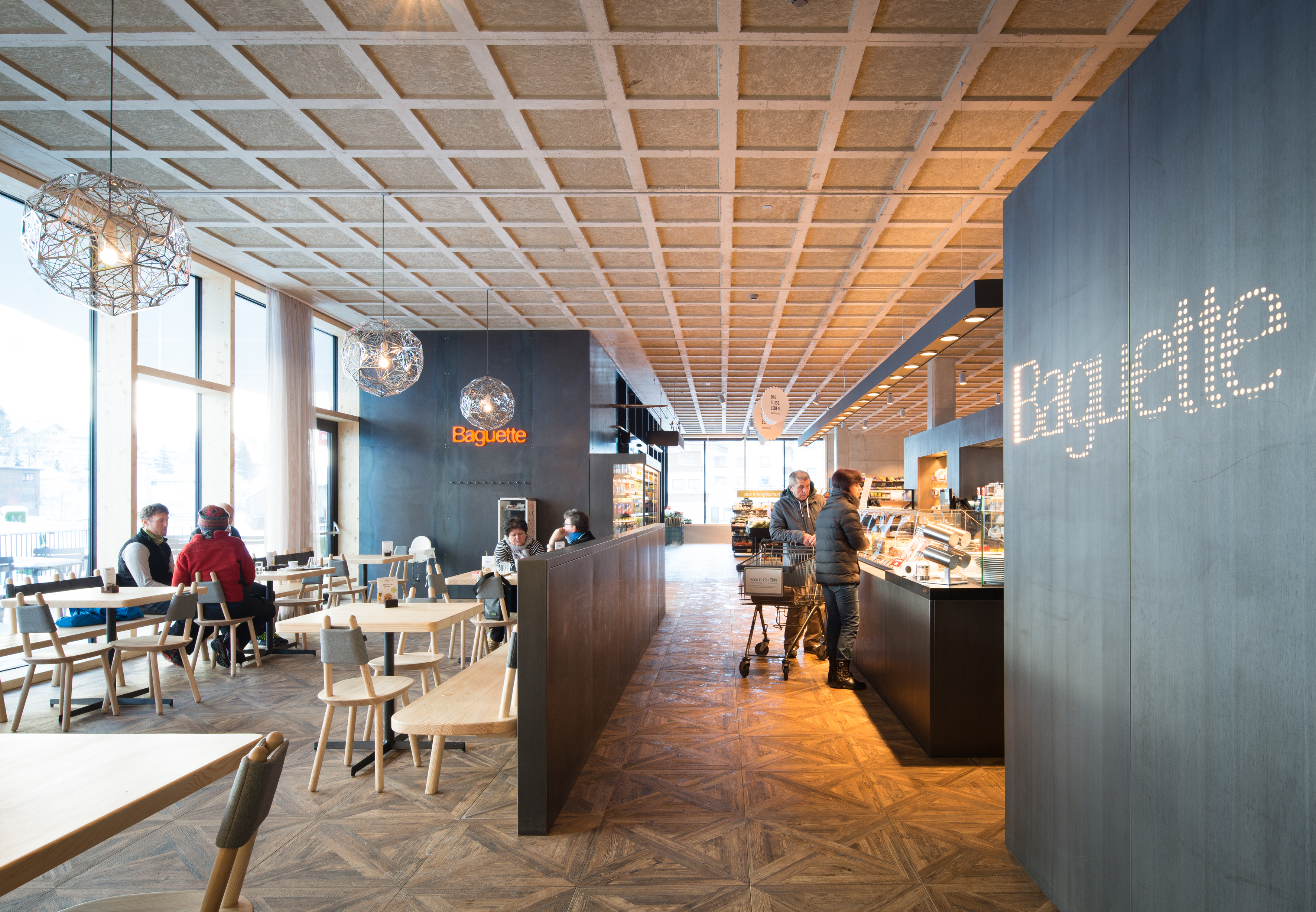 Die Aufenthaltsräume der Angestellten befinden sich an der Nordwestseite (zwischen Gastronomiebereich und Anlieferungsrampe). Hier befinden sich der Pausenraum sowie die Toilettenanlagen der Angestellten. Die Wärmeabgabe im Geschäftsbereich und den Nebenräumen erfolgt über Fußbodenheizung. Die Beleuchtung des Marktes erfolgt auf LED Basis.