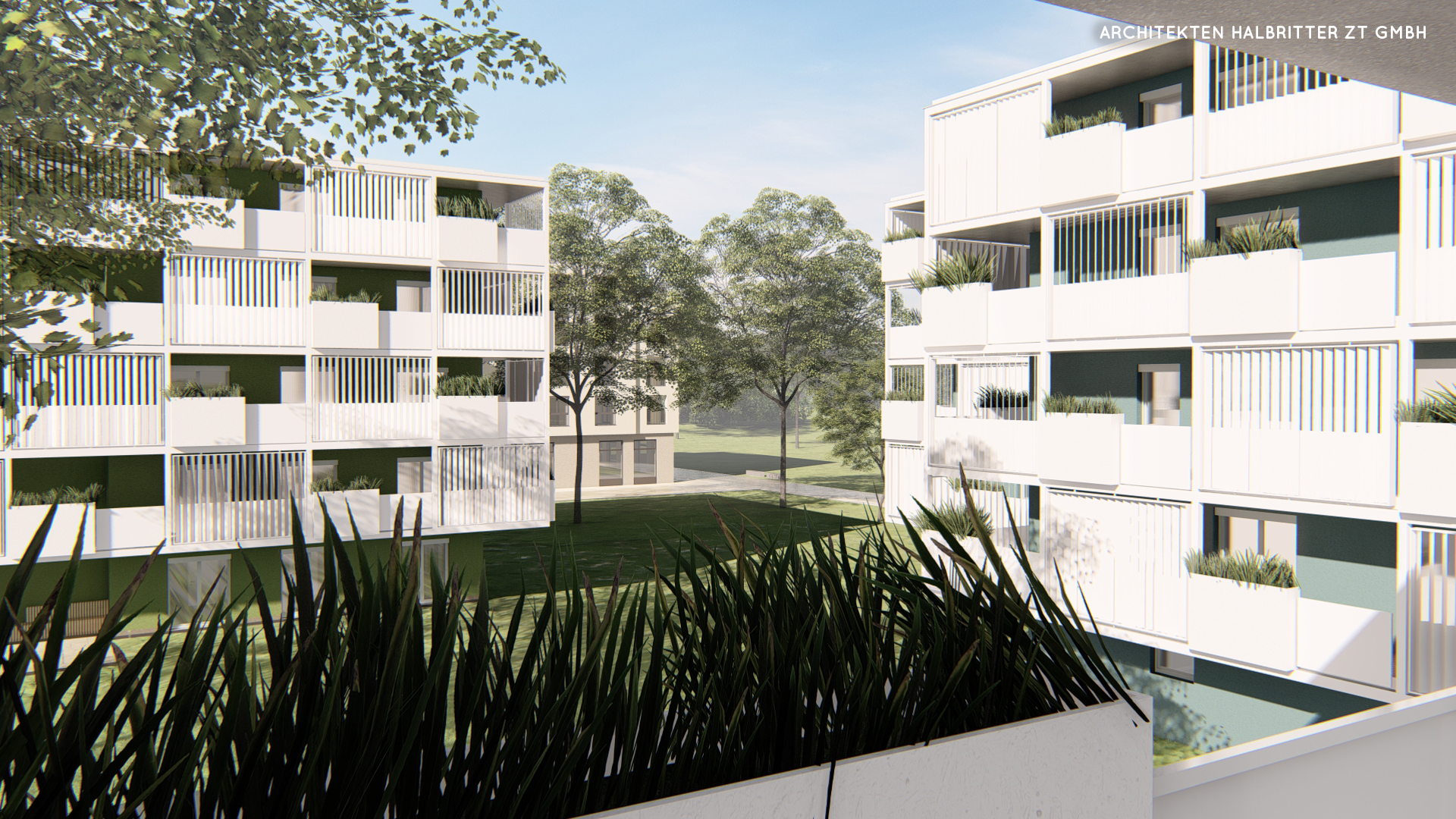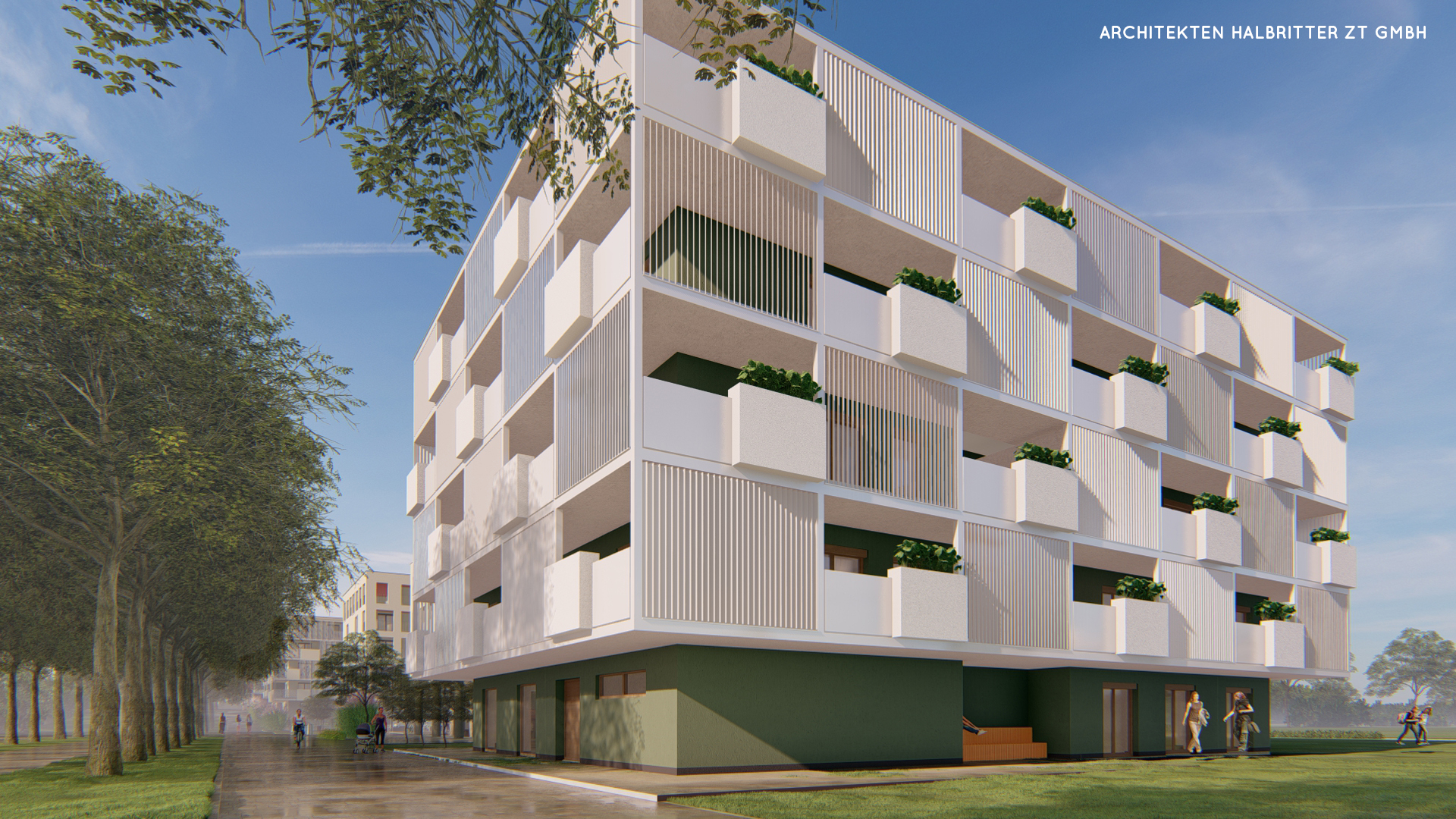Die Neue Eisenstädter Gemeinnützige Bau-, Wohn- und Siedlungsgesellschaft errichtet im Stadtgebiet Kirchäcker Ost in Eisenstadt ein modernes Wohn- und Geschäftsbauprojekt mit vier Bauteilen. Neben einer Scheibe mit Geschäftsflächen im Erdgeschoss und 24 Wohneinheiten entstehen drei Punkthäuser mit insgesamt 73 Wohnungen. Die Gebäude verfügen über bis zu fünf oberirdische Geschosse und sind auf einer zweigeschossigen Tiefgarage mit 239 Stellplätzen situiert. Großzügige private Freiräume wie Terrassen, Loggien und Mietergärten erhöhen die Wohnqualität. Ein barrierefreies Erschließungssystem, moderne Architektur mit klarer Fassadengliederung und durchdachte Freiraumgestaltung mit Spiel- und Aufenthaltsflächen tragen zur städtebaulichen Einbindung und hohen Lebensqualität bei.