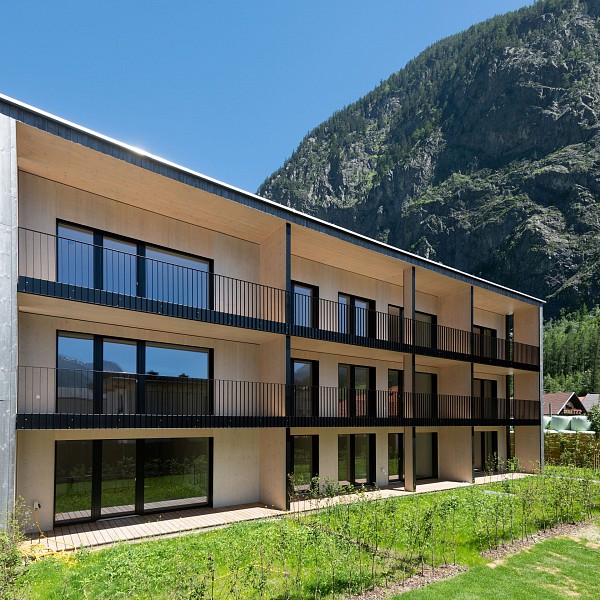 Die drei in ihrer Lage versetzten, dreigeschossigen Baukörper beherbergen insgesamt 36 Wohnungen in unterschiedlichen Größen. Jede Wohnung ist südseitig mit großzügigem Balkon oder Terrasse ausgestattet. Alle Gebäude werden als Passivhäuser laut den Vorgaben der Tiroler Wohnbauförderung errichtet, und bilden Zwischenräume und Plätze, welche als Privatgärten und öffentliche Freiflächen genutzt werden. Die parkenden Autos werden hauptsächlich in der Tiefgarage untergebracht, wobei die Einfahrt in die Tiefgarage als eingeschossiger Baukörper in Kombination mit Müll‐ und Fahrradraum geplant ist.