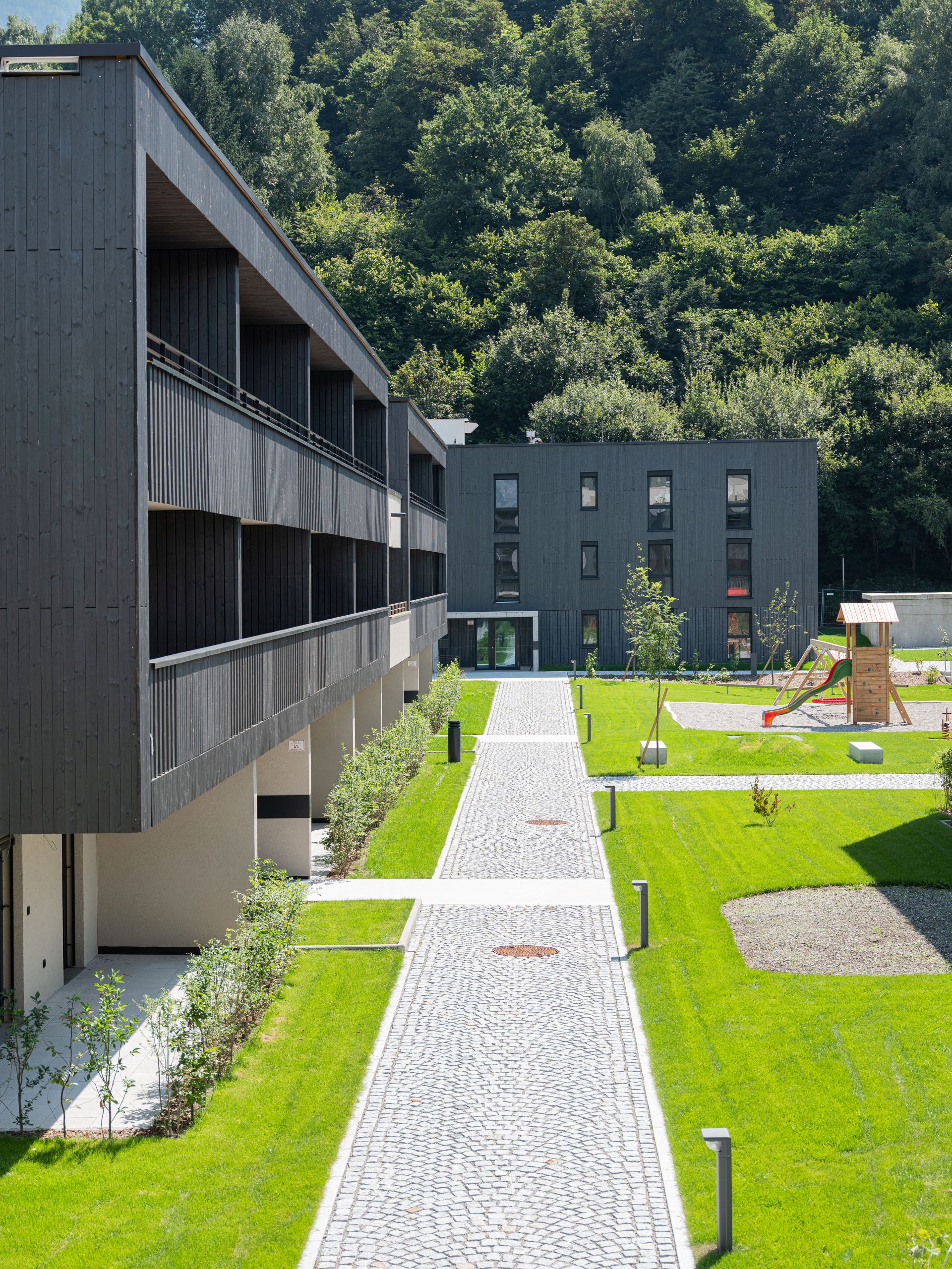 Die neue Heimat Tirol hat in Volders in Tirol eine Wohnanlage mit 5 Baukörpern, einer gemeinsamen Tiefgarage, Freiparkplätzen und einem unterirdischen Müllsammelsystem errichtet. Das Gesamtareal bietet sowohl öffentliche, halb öffentliche als auch private Rückzugsbereiche. Die halböffentlichen Bereiche sind durch geschickt angelegte Verbindungswege zwischen den Baugruppen vernetzt, und werden gleichzeitig an den bereits gegebenen Fuß- und Radwegen und dem im Westen liegenden Naherholungsbereich angebunden. Um die im Konzept dargestellte Baumbepflanzung auch tatsächlich umsetzten zu können wurde im Entwurf darauf Bedacht genommen, dass die Hofbereiche möglichst nicht unterbaut werden, um Bereiche für Baumbepflanzungen zu generieren.