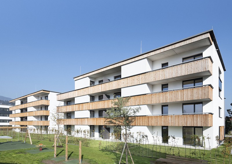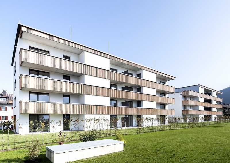 Der erste Bauabschnitt der Südtiroler Siedlung in Kufstein besteht aus drei viergeschossigen Baukörpern (EG+3OG) mit 42 Mietwohnungen und 57 Tiefgaragenparkplätzen. Die Tiefgarage ist von allen drei Gebäuden direkt zugänglich. Weitere 10 Stellplätze (davon 4 barrierefreie Stellplätze) liegen direkt an der Meranerstraße.