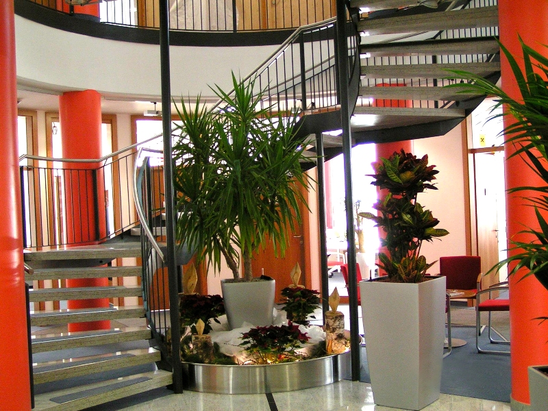 Im Zentrum des Gebäudes ist ein über drei Geschosse offenes Atrium angeordnet. Mit einem darüber liegendem Glasdach wurde für eine natürliche Belichtung bis in die untersten Geschosse gesorgt.
