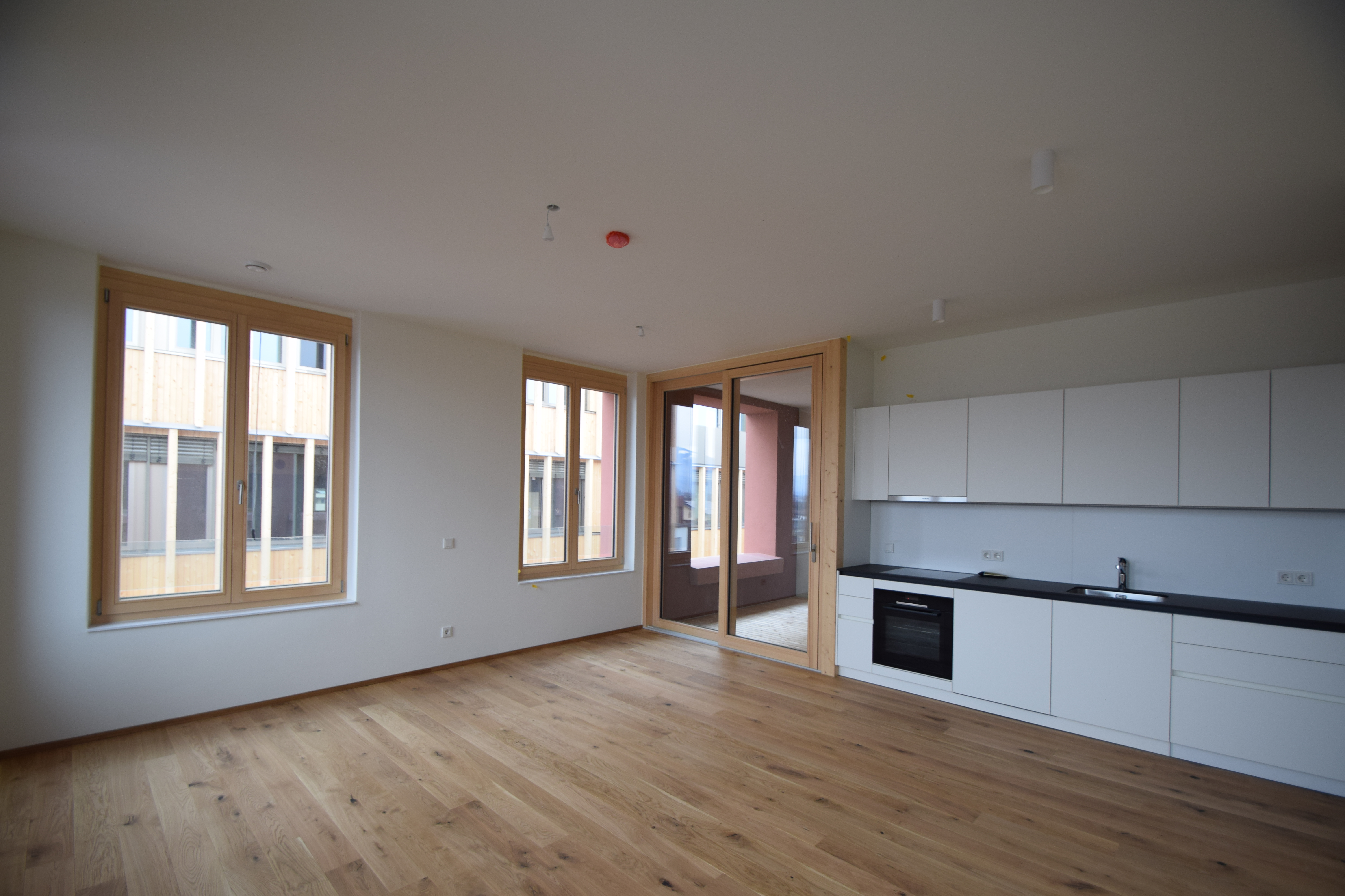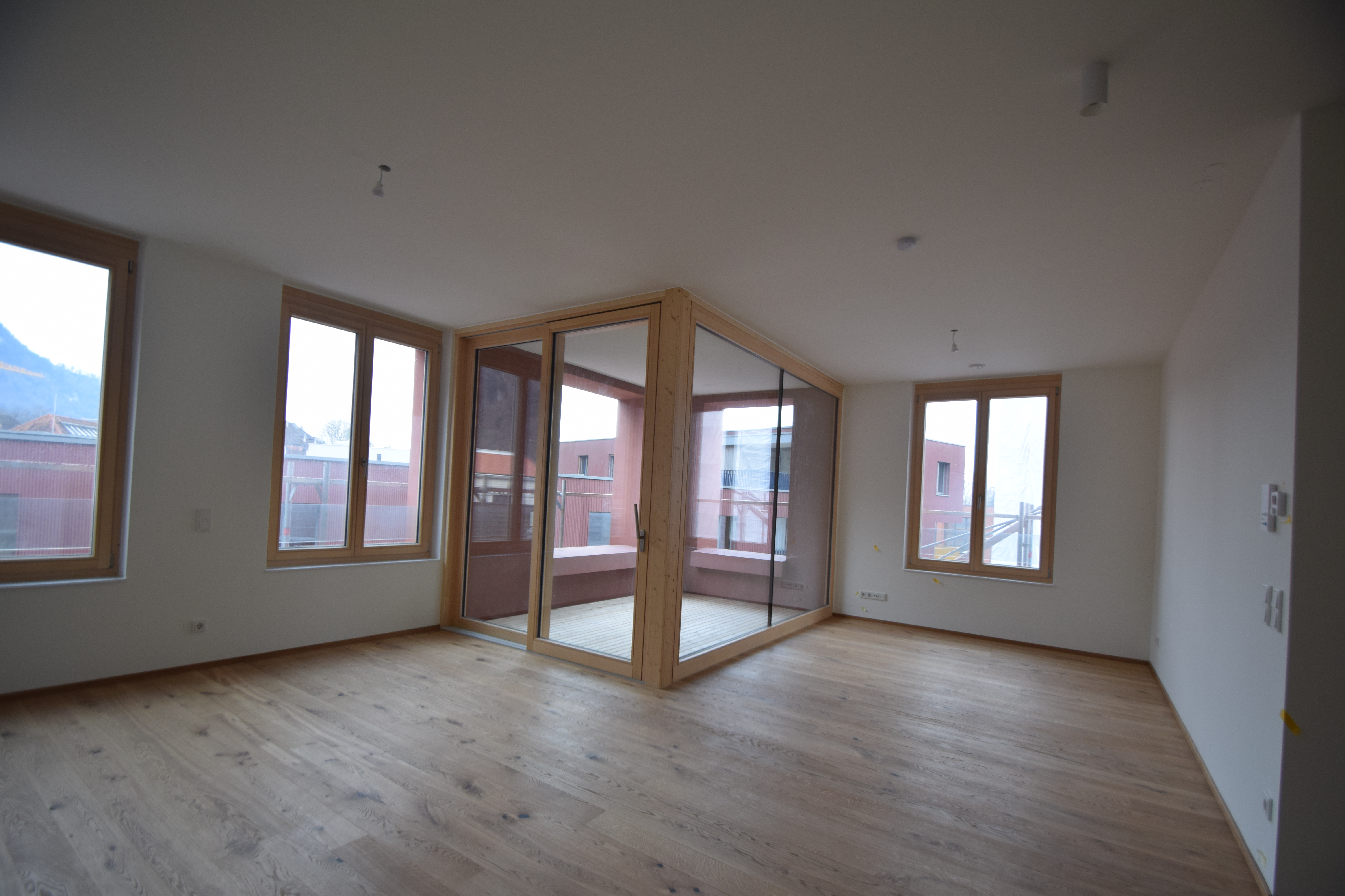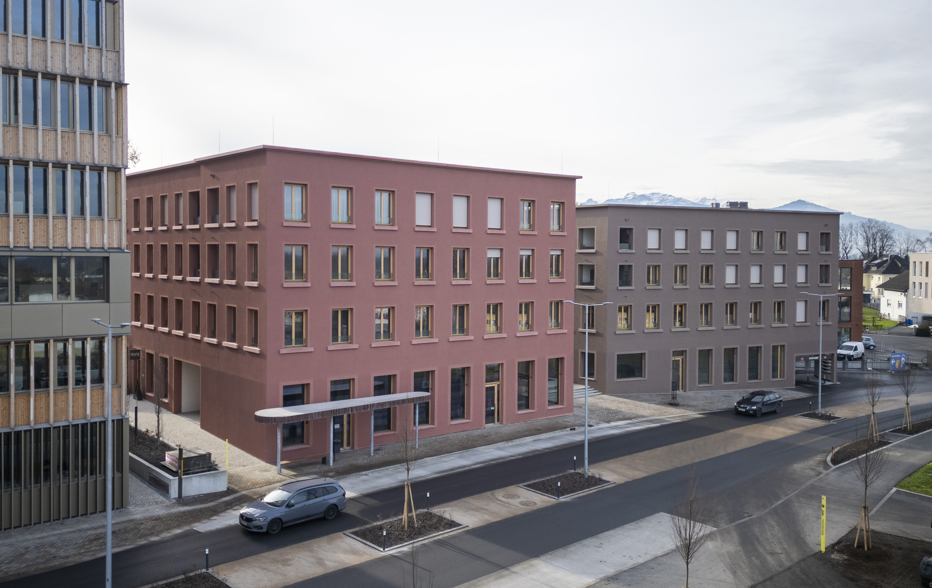Das Gebäude A2 ist ein viergeschossiger Wohn- und Gewerbebau im RathausQuartier Hohenems und umfasst 14 Wohnungen sowie Gewerbeflächen im Erdgeschoss. Der Baukörper ist in massiver Bauweise errichtet und erhält eine mineralisch verputzte Fassade mit Holzfenstern, wodurch ein ruhiges und einheitliches Erscheinungsbild entsteht. Großzügige Fensterflächen und integrierte Loggien sorgen für helle Wohnräume und eine klare, wohnorientierte Gebäudestruktur. A2 fügt sich als moderner, kompakter Baustein harmonisch in das neu entstehende Stadtquartier ein.