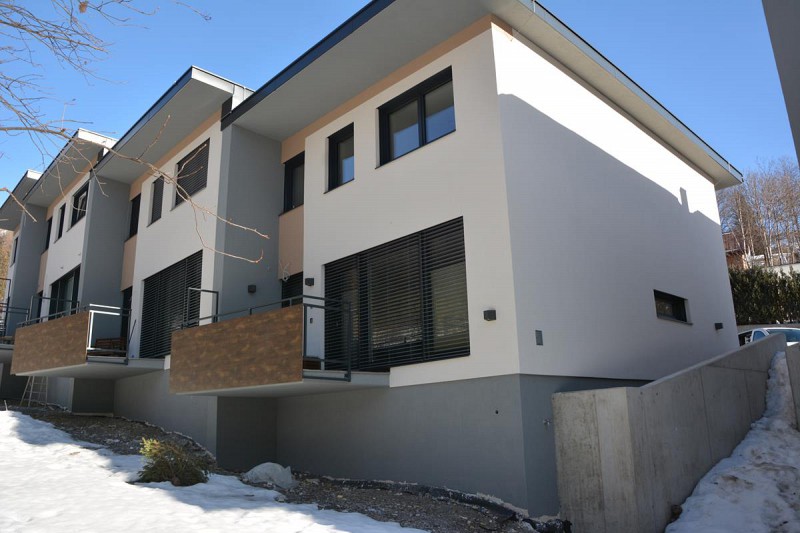 Auf einem ehemaligen Betriebsgelände wurde eine Anlage aus 9 Reihenhäusern in 2 Blöcken aufgeteilt errichtet. Die Marktgemeinde stellte das Grundstück zur Verfügung, die Gebäude wurden als Bauherren-Modell realisiert. Errichtung der Gebäude in Massivbauweise mit Holzdachstühlen in Niedrigstenergiebauweise. Die Beheizung erfolgt mit Fernwärme. Eine Komfortlüftung mit Wärme- und Feuchterückgewinnung ergänzt das hocheffiziente Gebäudekonzept.