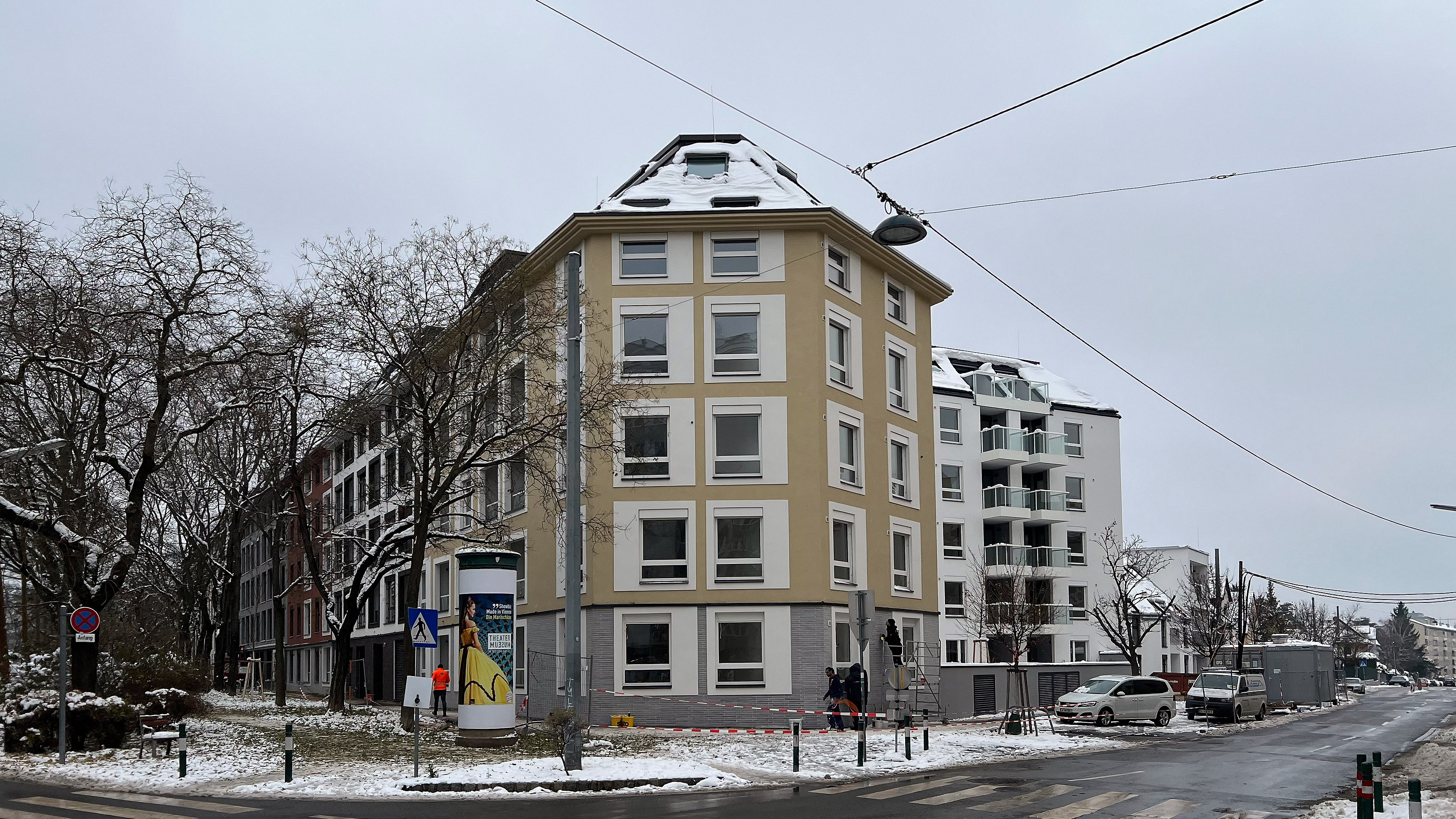 Die Wohnanlage mit 6 Stiegenhäusern mit gesamt 312 Wohnungen und Tiefgarage wurde auf den Grundstücken des ehemaligen ÖAMTC - Stützpunktes in 1150 Wien errichtet. Die Häuser staffeln sich in ihrer Höhe von Süd nach Nord - von Bauklasse III mit 6 oberirdischen Geschoßen nach Bauklasse I mit 3 oberirdischen Geschoßen - und ordnen sich um zwei Innenhöfe an.