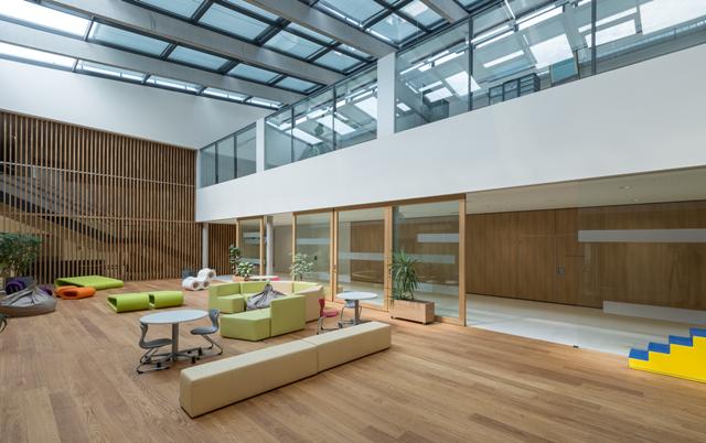 Neben einer kompakten Baukörperform, die gute Voraussetzung für eine verlustminimierende Bauweise schafft, wurde die Gebäudehülle hochwärmegedämmt ausgeführt. Die Lüftungsverluste sind durch den Einsatz hocheffizienter Wärmerückgewinnung reduziert. Der optimierte Glasflächenanteil nutzt die solare Energie in den Wintermonaten und schafft eine optimale Tageslichtversorgung in den Nutzungszeiten des Gebäudes. In den Sommer- und Übergangsmonaten verhindert eine außenliegende Beschattung und ein entsprechendes Nachtlüftungskonzept eine Überwärmung der Aufenthaltsräume. Neben Photovoltaikelementen, die einen Teil des Strombedarfs bereitstellen, wurde der Energieverbrauch des Gesamtobjekts durch die Optimierung der einzelnen haustechnischen Komponenten gering gehalten.