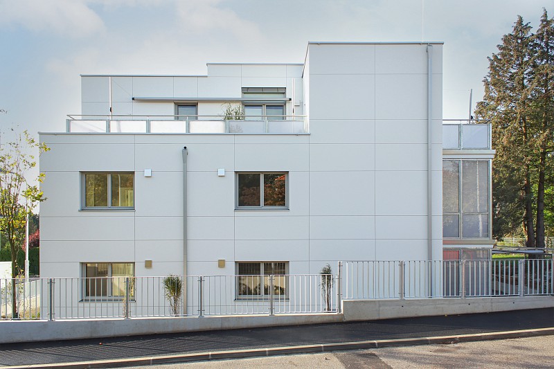 VILLA DOSTAL liegt in ruhiger Grünlage in unmittelbarer Nähe zum Wienerwald. Mit 6 Wohnungen in 3 Geschoßen greift sie die Tradition der Hietzinger Mietvilla auf, die sie mit moderner Architektur neu interpretiert. Alle Wohnungen haben große Freiflächen, ein gartenseitiges Pflanzgerüst wirkt als grüne Fassade.