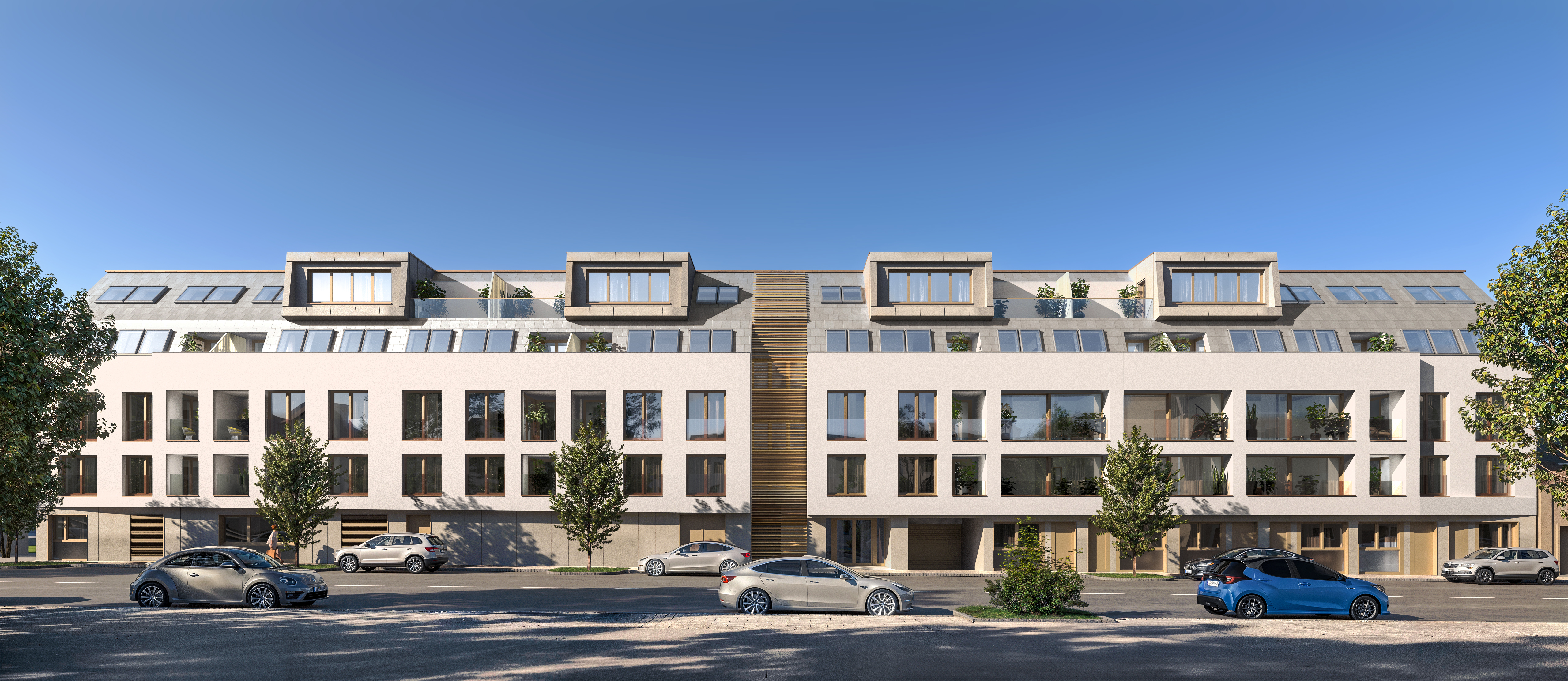 Das kompakte, voll unterkellerte Wohnhaus wird in Stahlbetonmassivbauweise ausgeführt und umfasst sechs Geschosse: ein Untergeschoss, ein Erdgeschoss, das 1. und 2. Obergeschoss sowie das 1. und 2. Dachgeschoss. Alle Wohnungen verfügen über einen eigenen Außenbereich – von Terrassen und Gärten bis hin zu Balkonen, Loggien oder Dachterrassen.