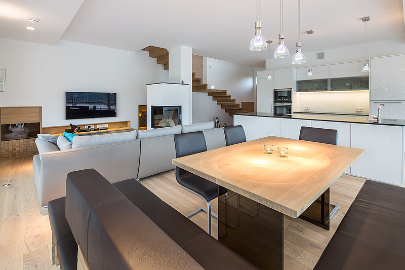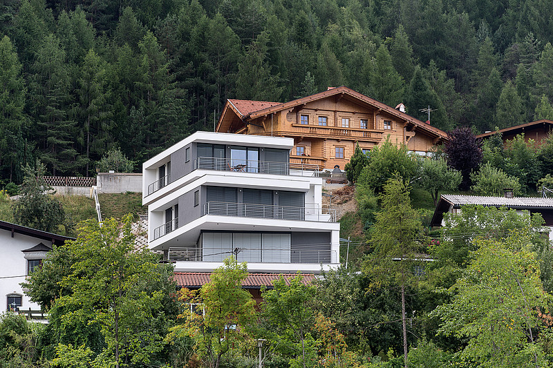 Wohnhaus auf zwei Ebenen in Hanglage, Süd-Ost Ausrichtung, massvie Bauweise, Niedrigstenergiehaus, Gebäudekondintionierung über Luft/Wasserwärempumpe