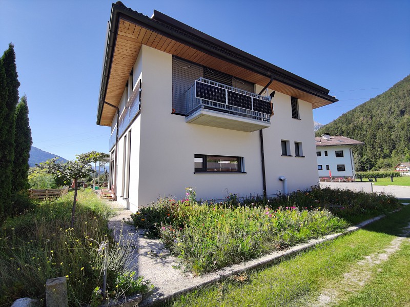 Durch die süd/west ausgerichtete fassadenintegrierte PV-Anlage wird das ganze Jahr über zusätzlich