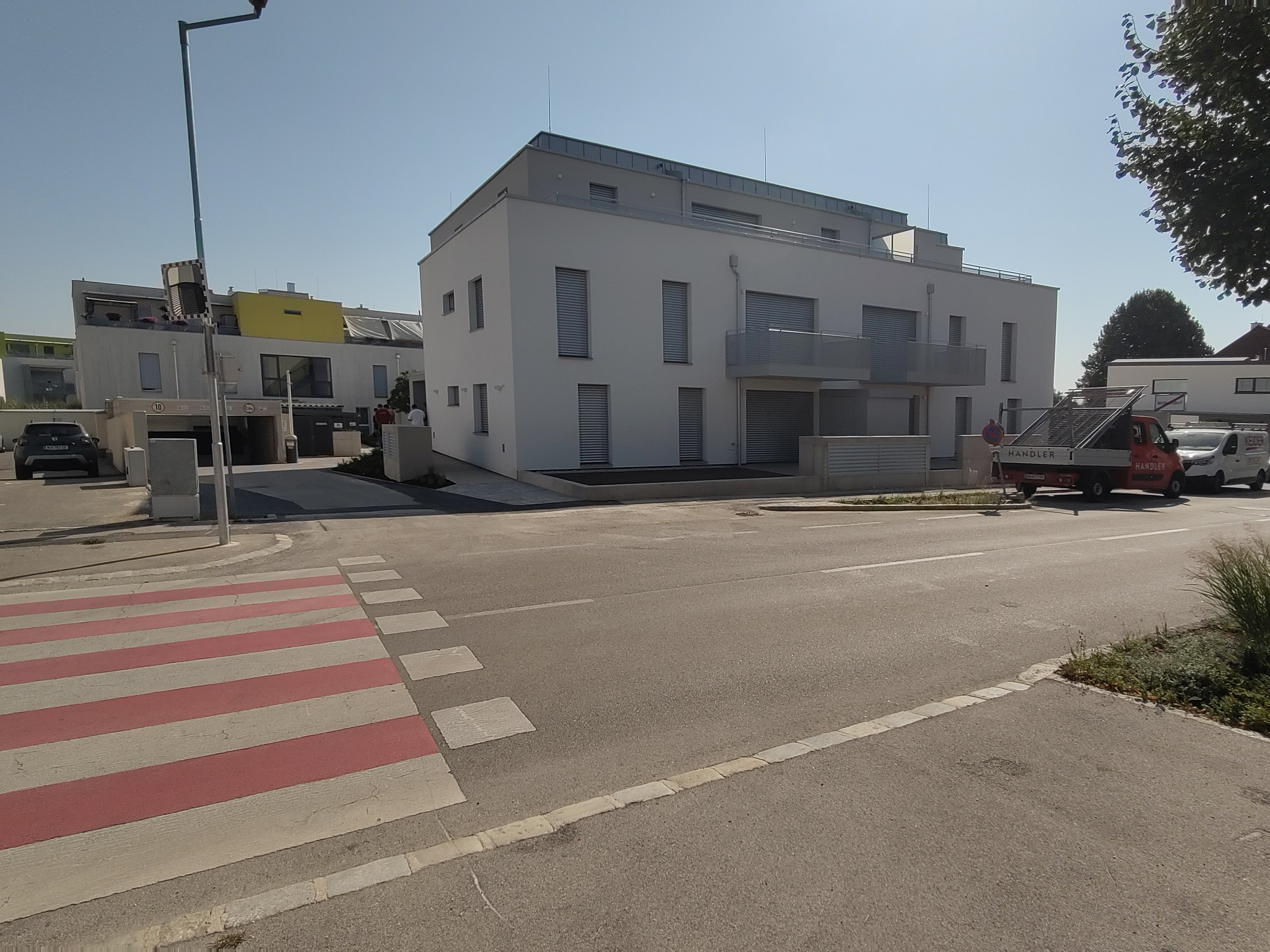 Das Bauvorhaben bildet die Ergänzung einer bestehenden Wohnhausanlage. Diese wird mit einem Wohnhaus mit 8 Wohnungen und einer Tiefgarage erweitert. Das Gebäude verfügt über 3 oberirdische Geschosse, die über einen Aufzug barrierefrei zugänglich sind. Am Flachdach des Hauses wird eine PV-Anlage integriert. Die Tiefgarage umfasst 9 Stellplätze. 3 weitere Stellplätze sowie eine überdachte Fahrradgarage sind im Freien entlang der Zufahrtsstraße angeordnet.
