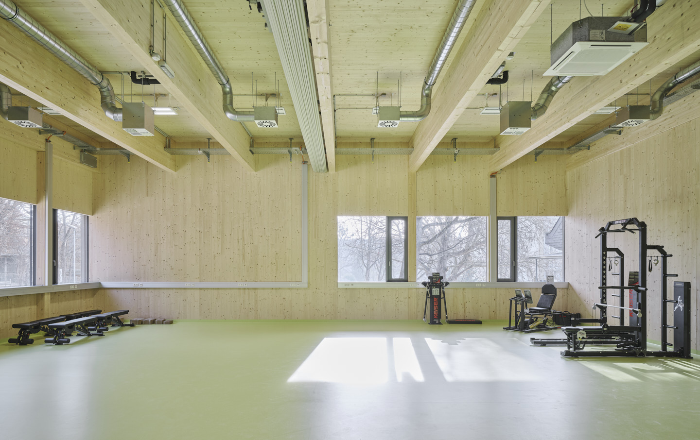 Das Gebäude beinhaltet Räumlichkeiten für die Bereiche Sportphysiologie und Bewegungswissenschaften. Erschlossen über ein gemeinsames Foyer teilen sie sich Sanitär- und Administrationsflächen. Den zwei Laborräumen sind separate Trainigsflächen, Umkleide- und Lagerbereiche zugeordnet.