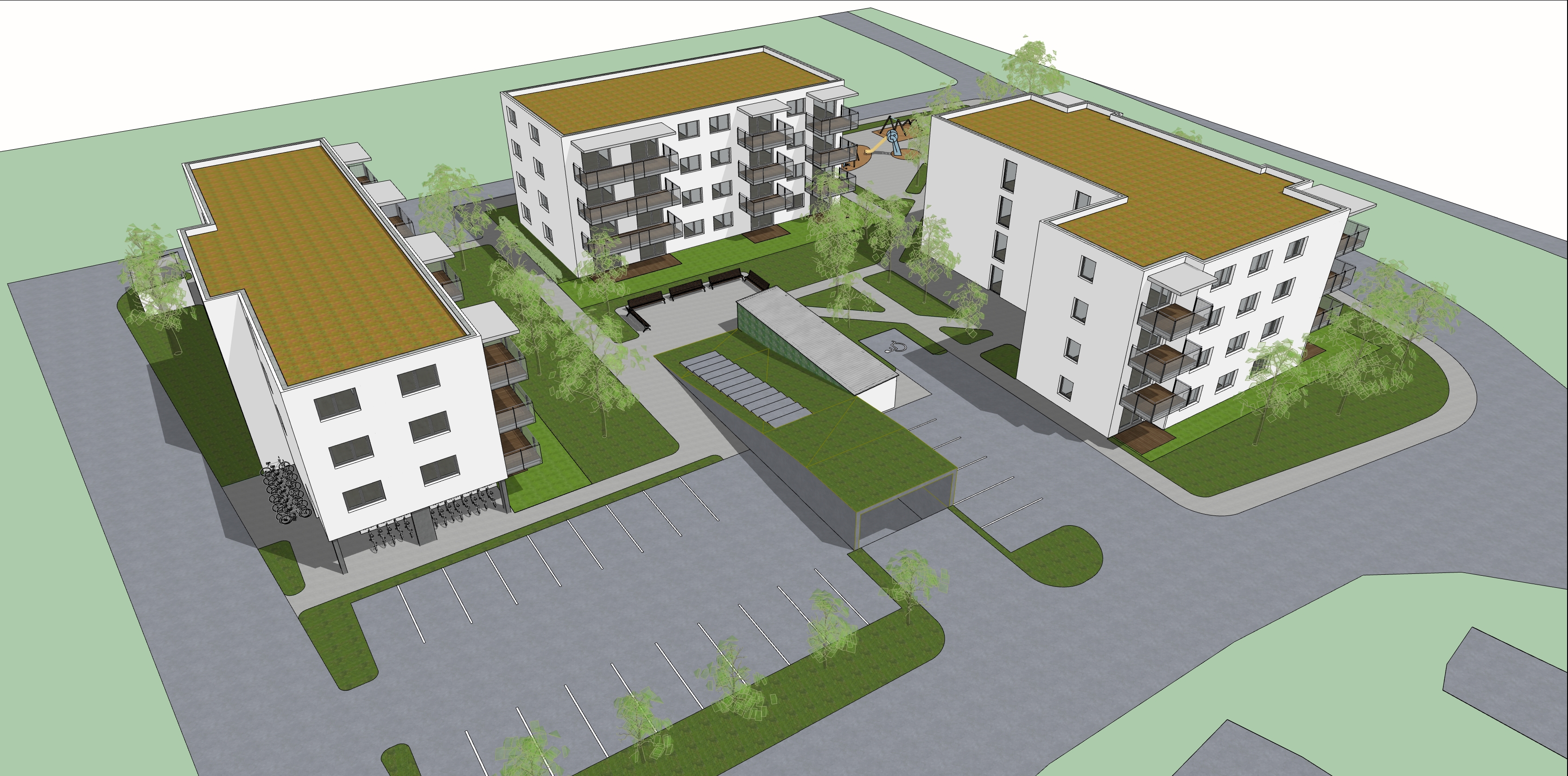 50 Wohnungen und einer Tiefgarage für 50 Stellplätze in