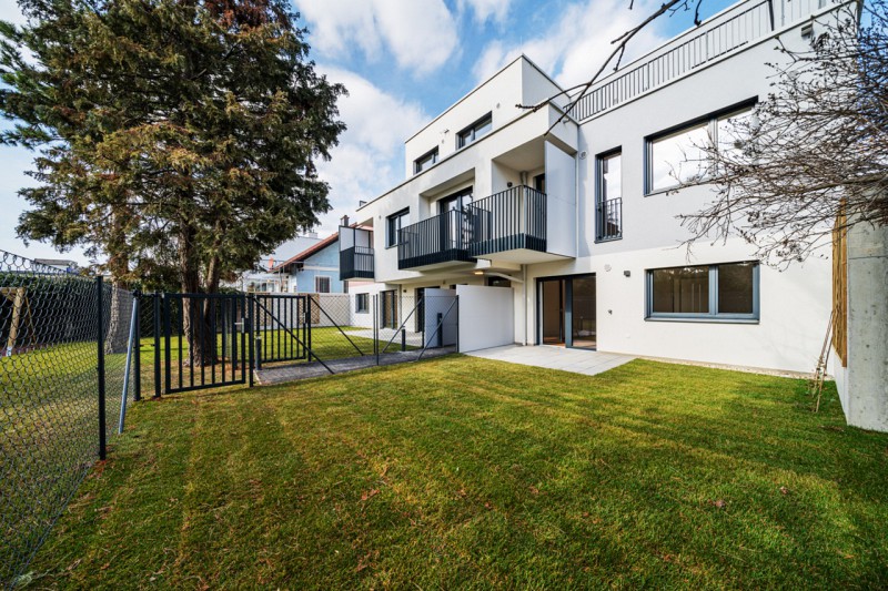 Die Wohnhausanlage besteht aus zwei Baukörpern. Zwischen den Gebäuden befinden sich Eigengärten der Mieter:innen, ein Kinderspielplatz und allgemeine Grünflächen.