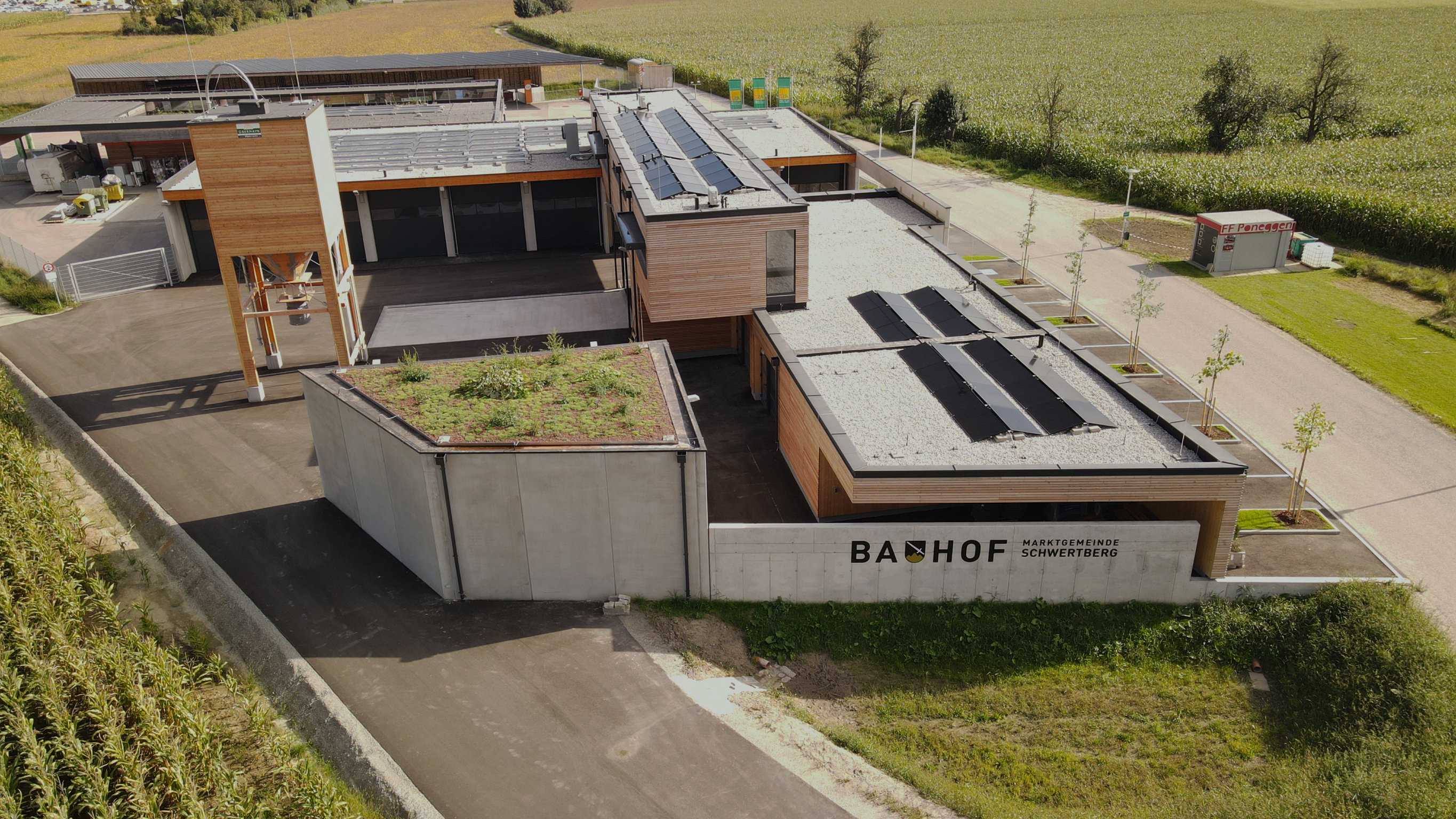 Es wurde ein Bauhof mit Fahrzeughalle und Werkstätten, sowie einem Bürotrakt und Aufenthaltsmöglichkeiten für Mitarbeiter:innen errichtet.