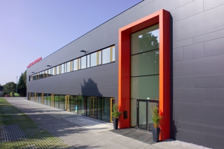 Obwohl das Gebäude ursprünglich von der Firma Roylon 1969 für die Textilerzeugung geplant wurde, konnten auf der gesamt zur Verfügung stehenden Fläche von 3300m2 alle Wünsche des neuen Nutzers dank der bestehenden neutralen Gebäudestruktur optimal umgesetzt werden. Im Erdgeschoß befinden sich nun die gesamten Produktions- und Nebenraumflächen, im Obergeschoss die Lagerflächen, die Kleinteileproduktion und der Verwaltungstrakt, der über die neue, zweigeschossige Eingangshalle und die repräsentative Stahlwendeltreppe erschlossen wird.
