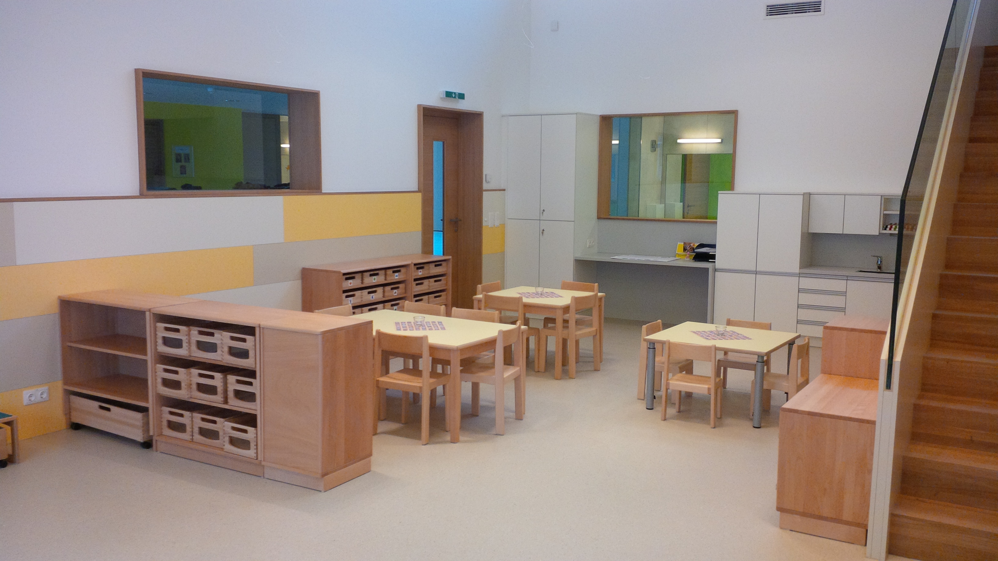 Auf einem Areal im Wirtschaftpark ECO-Plus in IZ NÖ-Süd, Obj. M54, das von der Straße 9, sehr gut zu erreichen ist wurde der Neubau eines fünfgruppigen Kindergartens umgesetzt.