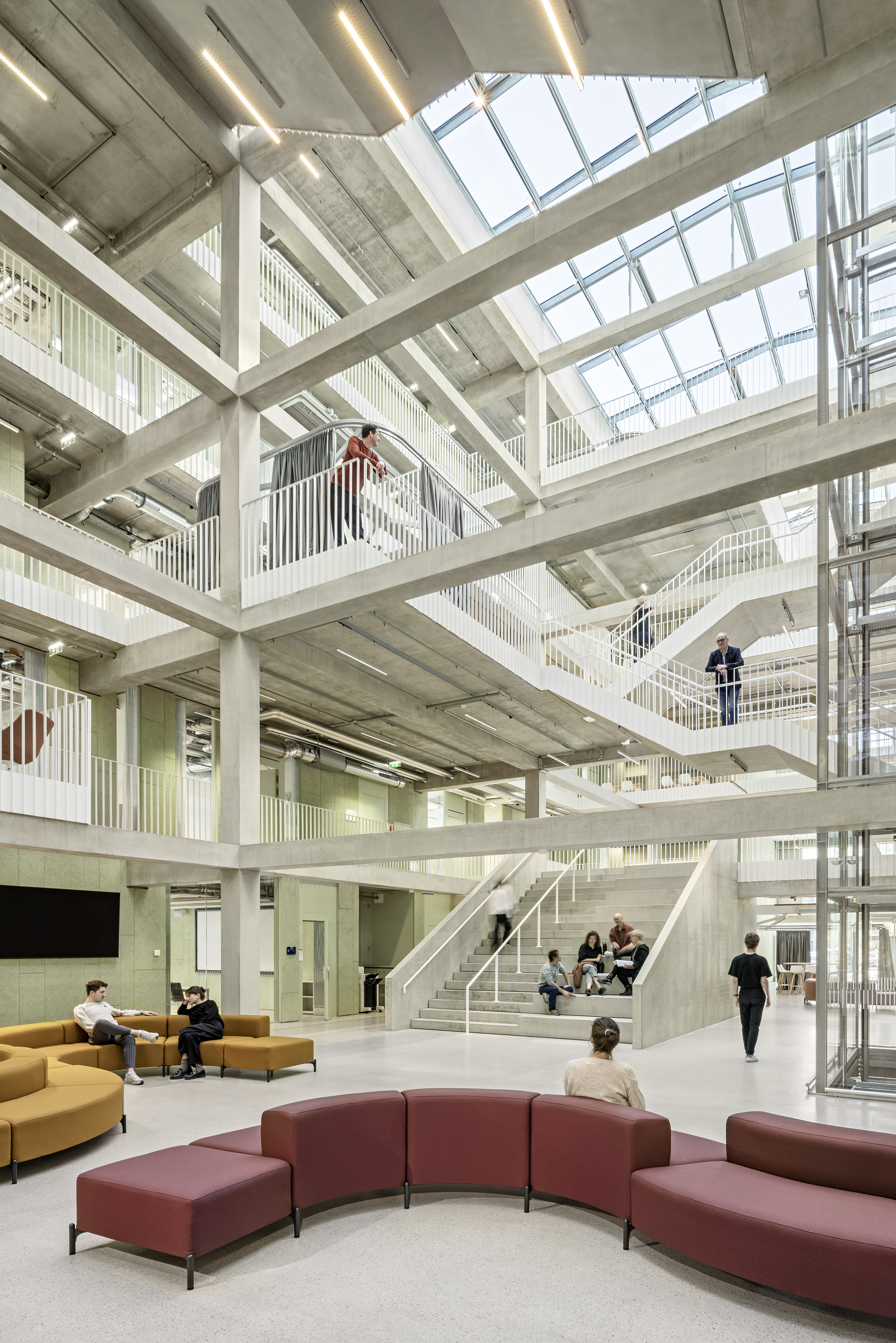 Das Projekt ging 2020 als Sieger aus dem Architekturwettbewerb 'Erweiterung Campus West, House of Schools' hervor. Es bietet Raum für die bereits gegründete Business School. Eine lebendige Erdgeschoßzone bietet die Möglichkeit unterschiedlich und flexibel bespielt zu werden. Die Wärme- und Kälteversorgung erfolgt über eine Sole/Wasser-Wärmepumpenanlage und ein Tiefensondenfeld. Die Wärme- bzw. Kälteeinbringung erfolgt über eine oberflächennahe Bauteilaktivierung in der Stahlbetondecke. Am Dach des Gebäudes wird auf der extensiven Begrünung eine Photovoltaikanlage angebracht. Die Fassade ist in zwei Ebenen geplant. Die warme Hülle bildet eine Pfosten-Riegel-Fassade. Der Sonnenschutz ist in einer vorgelagerten Stahlkonstruktion eingebettet.