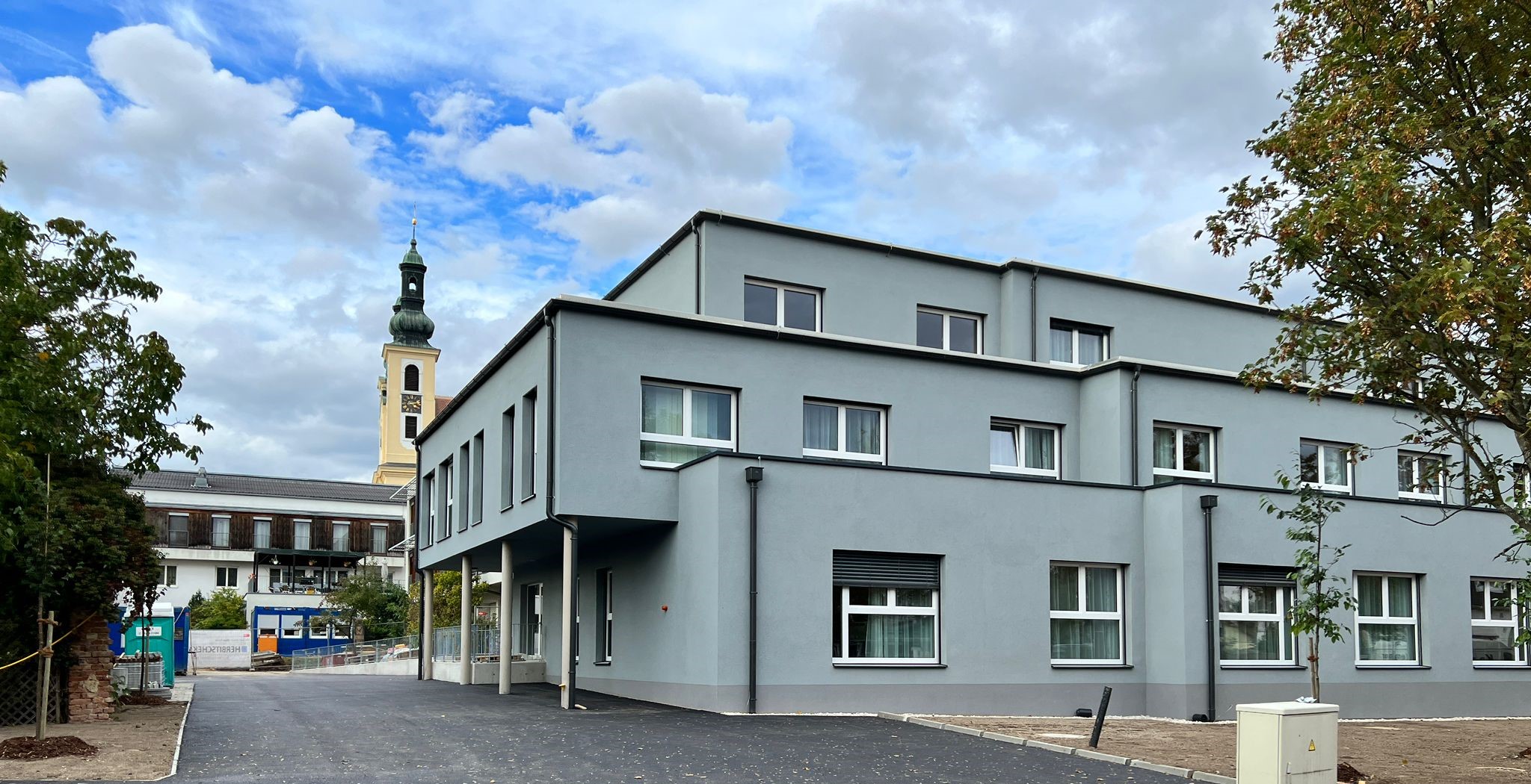 Das bestehende Pflegezentrum Maria Lanzendorf besteht nun aus drei zusammenhängenden Gebäudeteilen: Der bestehende Bauteil Ost wurde bis auf die Tragstruktur entkernt und umfassend saniert. Ergänzend dazu wurde der Bauteil Süd neu errichtet, so dass das Zentrum nun über 160 Betten verfügt.
