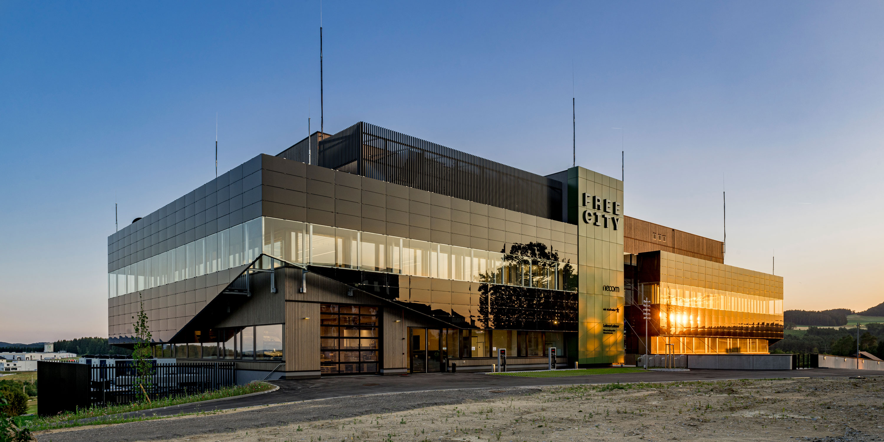 Im oberösterreichischen Freistadt entstand auf 6.000 m2 ein Bürogebäude der nächsten Generation. Eine kompromisslos nachhaltige Bauweise und die Ausstattung mit modernsten erneuerbaren Energielösungen und Speichermöglichkeiten machen die Free City zu einem Leuchtturm-Projekt in der nachhaltigen Gebäudetechnik und klimafreundlichen Bauwesen. Der Name des Gebäudes "Free City" ist Programm - frei von fossiler Energie, frei von CO2, frei von Abhängigkeit und zudem regional angesiedelt in Freistadt. Durch Photovoltaik-Anlage auf allen 5 Gebäudeseiten, neoom Stromspeicher, Wärmepumpen, großzügig dimensioniertem E-Ladepark und smartem Energiemanagementsystem, wird das Maximum an lokal produziertem Strom genutzt, dabei das Netz entlastet und Emissionen reduziert.