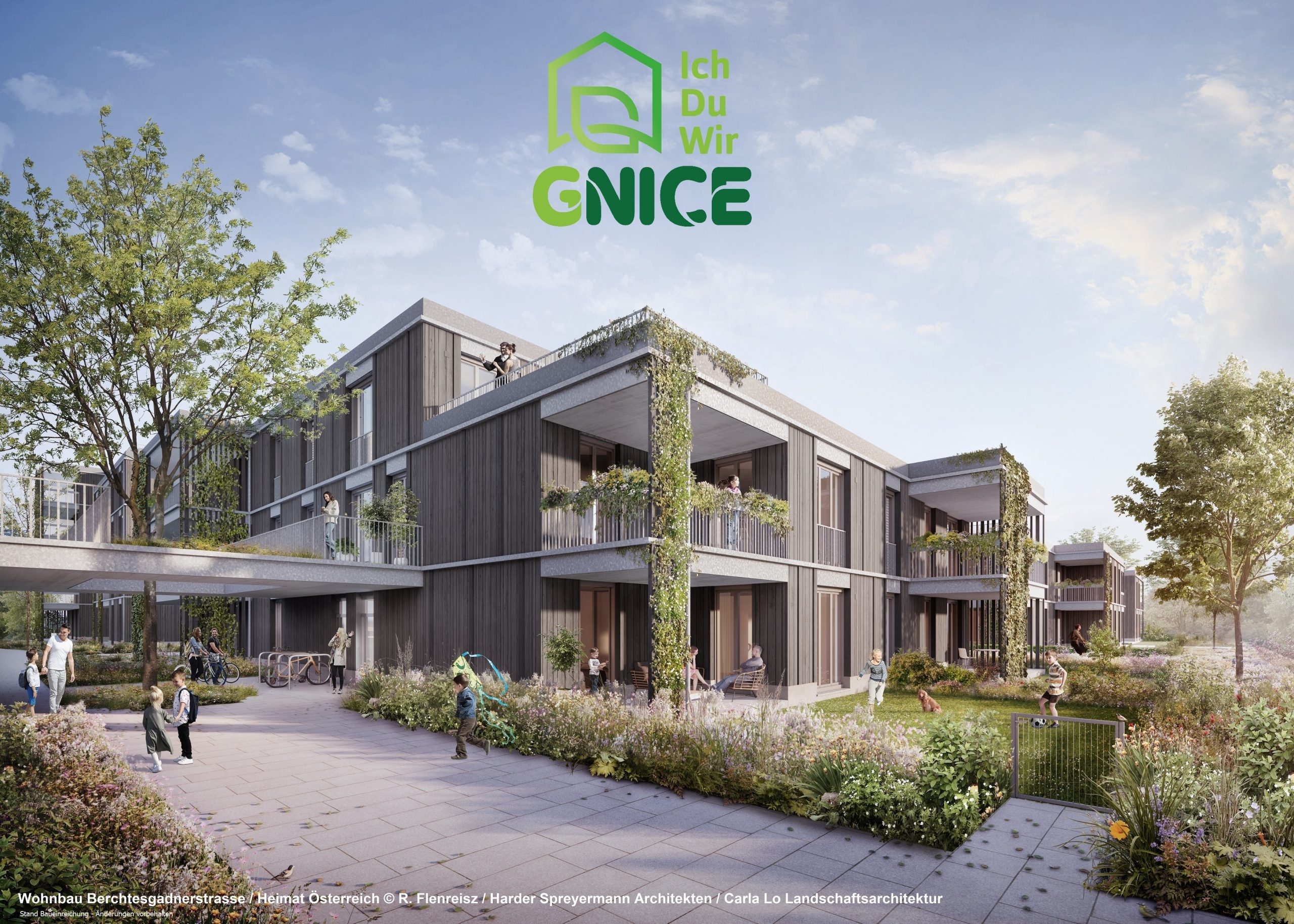 Das im Süden von Salzburg entstehende Wohnbauprojekt GNICE in der Gneisfeldstraße (Stadtteil Gneis) ist in vielerlei Hinsicht beispielgebend und zukunftsweisend. Für die Bewohner:innen bietet es eine Wohnqualität und ein Wohnerlebnis, wie es nicht leicht zu finden ist. Mit GNICE entsteht ein kleines Dorf mitten in der Stadt mit einer hervorragenden Infrastruktur. In unmittelbarer Nähe findet sich alles, was für das tägliche Leben benötigt wird. Die Innenstadt von Salzburg ist in ca. 10 Minuten erreichbar. Mit dem nahegelegenen Eichetwald liegt das Naherholungsgebiet direkt vor der Haustür. Die sonnige Lage bietet nahezu von jeder Wohnung aus einen besonders schönen Ausblick – ob in die Berge, ins Grüne oder zur Festung Hohensalzburg.