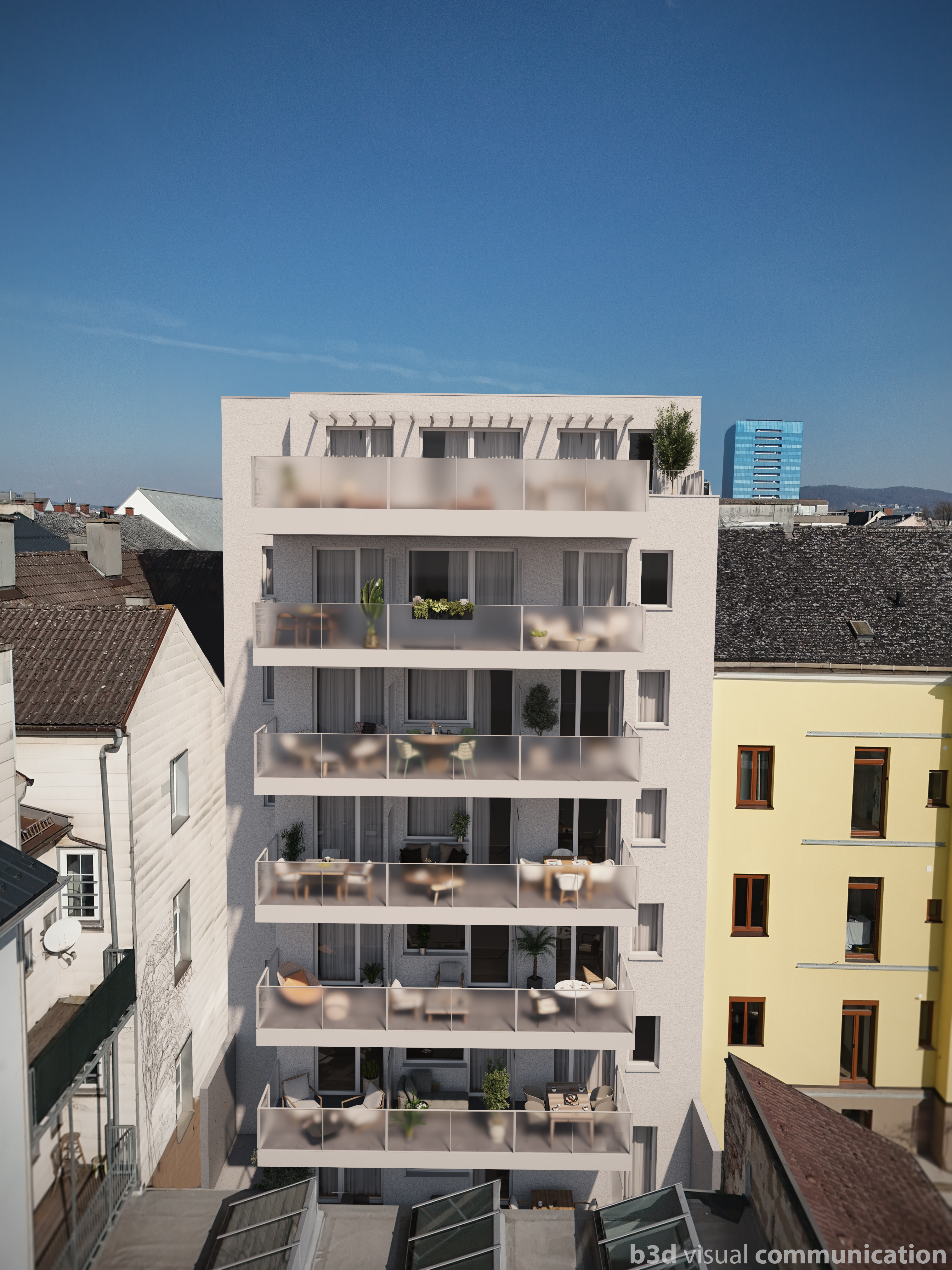 Es wird mitten in Linz in zentraler Lage in der Humboldtstraße 36 ein Wohnhaus in Massivbauweise mit 15 Wohnungen errichtet. Ein neues Zeitgemäßes Gebäude mit 7 oberirdischen Geschoßen sowie einem unterirdischen Geschoß wird errichtet. Es werden sechs 1-Zimmerwohnungen, sechs 2-Zimmerwohnungen, zwei 3-Zimmerwohnungen und eine 4-Zimmerwohnung errichtet. Es erhalten alle Wohnungen eine Terrasse, Balkon oder Loggia. Aufgrund der zentralen Lage ist das Gebäude ohne Parkplätze oder Tiefgarage geplant. Das Dach wird begrünt ausgeführt. Die Heizung erfolgt mit Fernwärme sowie Fußbodenheizung und das Warmwasser wird mittels Wohnungsstationen erzeugt. Die Belüftung der Wohnräume erfolgt mechanisch durch Wohnraumlüftungsgeräten mit Wärmerückgewinnung.