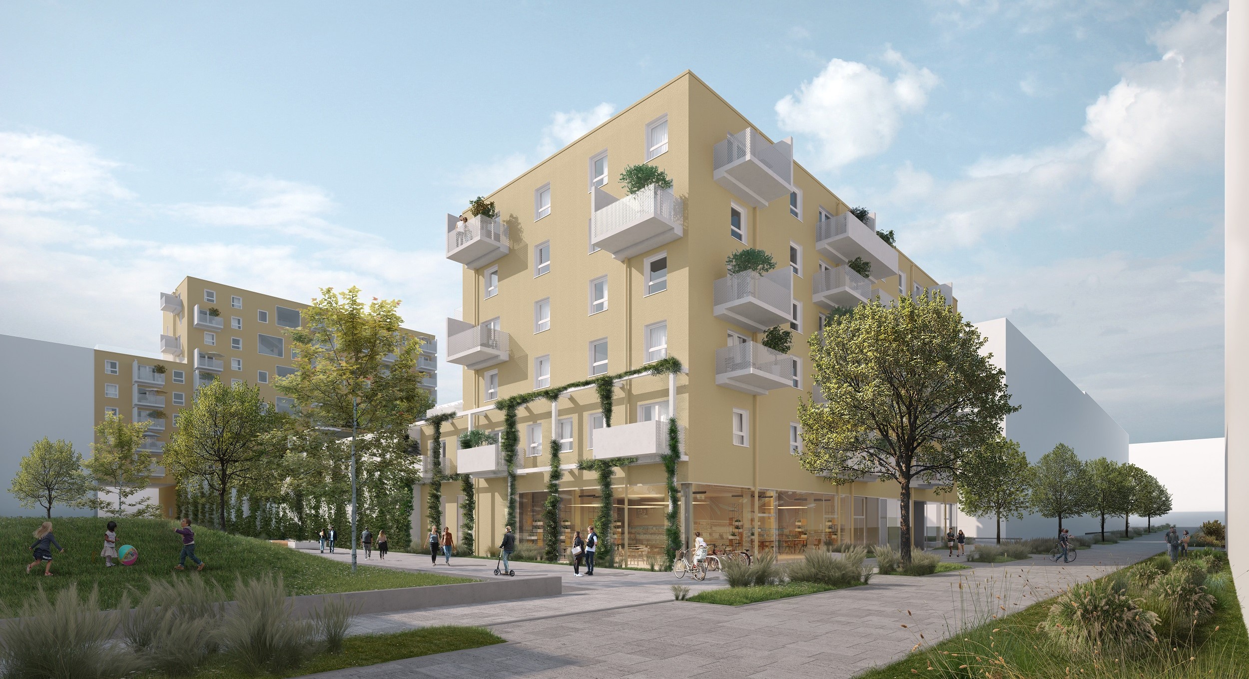 Im 22. Wiener Gemeindebezirk Donaustadt, mitten im autofreien Stadtentwicklungsgebiet Oberes Hausfeld, entsteht das 6-geschossige Wohn- und Gewerbeprojekt K2 mit 44 Wohnungen und 2 Gewerbeeinheiten im Erdgeschoss. Das Parkdeck inklusive der Dachfreifläche gehört zu K3 und wird von den Bewohnern beider Bauvorhaben genutzt. Dort befindet sich ein Kleinkinderspielplatz, während im Süden ein gemeinschaftlicher Kinder- und Jugendspielplatz zusätzlichen Freiraum bietet. Ein durchdachtes Mobilitätskonzept sorgt für zahlreiche Fahrradstellplätze. Balkone und Terrassen bieten zusätzlichen Wohnkomfort. Das innovative Klima Loop® PLUS-System mit Tiefensonden und Wärmepumpen ermöglicht eine nachhaltige Energieversorgung. Hier entsteht ein urbanes Zuhause mit moderner Technik und hoher Lebensqualität.