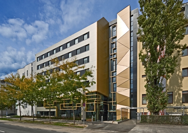 Die Funktionen und Nutzungen des Gebäudes zeichnen sich in der Alupaneel-Fassade ab: