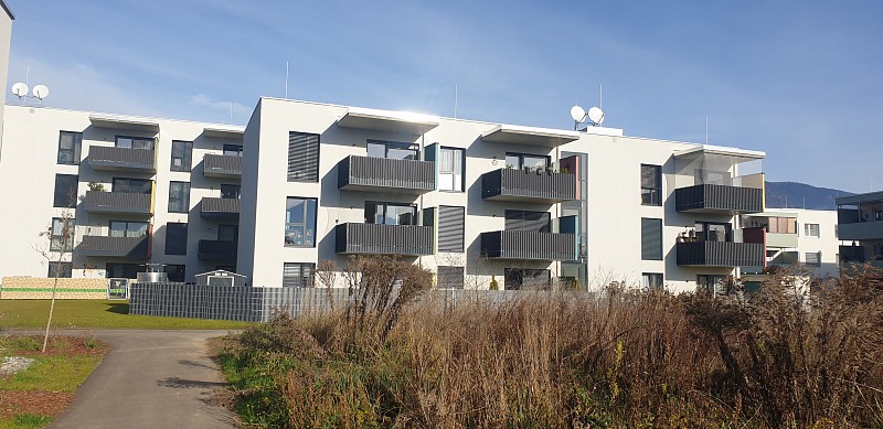 Errichtung einer mehrgeschossigen Wohnanlage mit mehreren Baukörpern (A,B,C,D) mit Gesamt 59 Wohneinheiten und einer zentralen Tiefgarage.