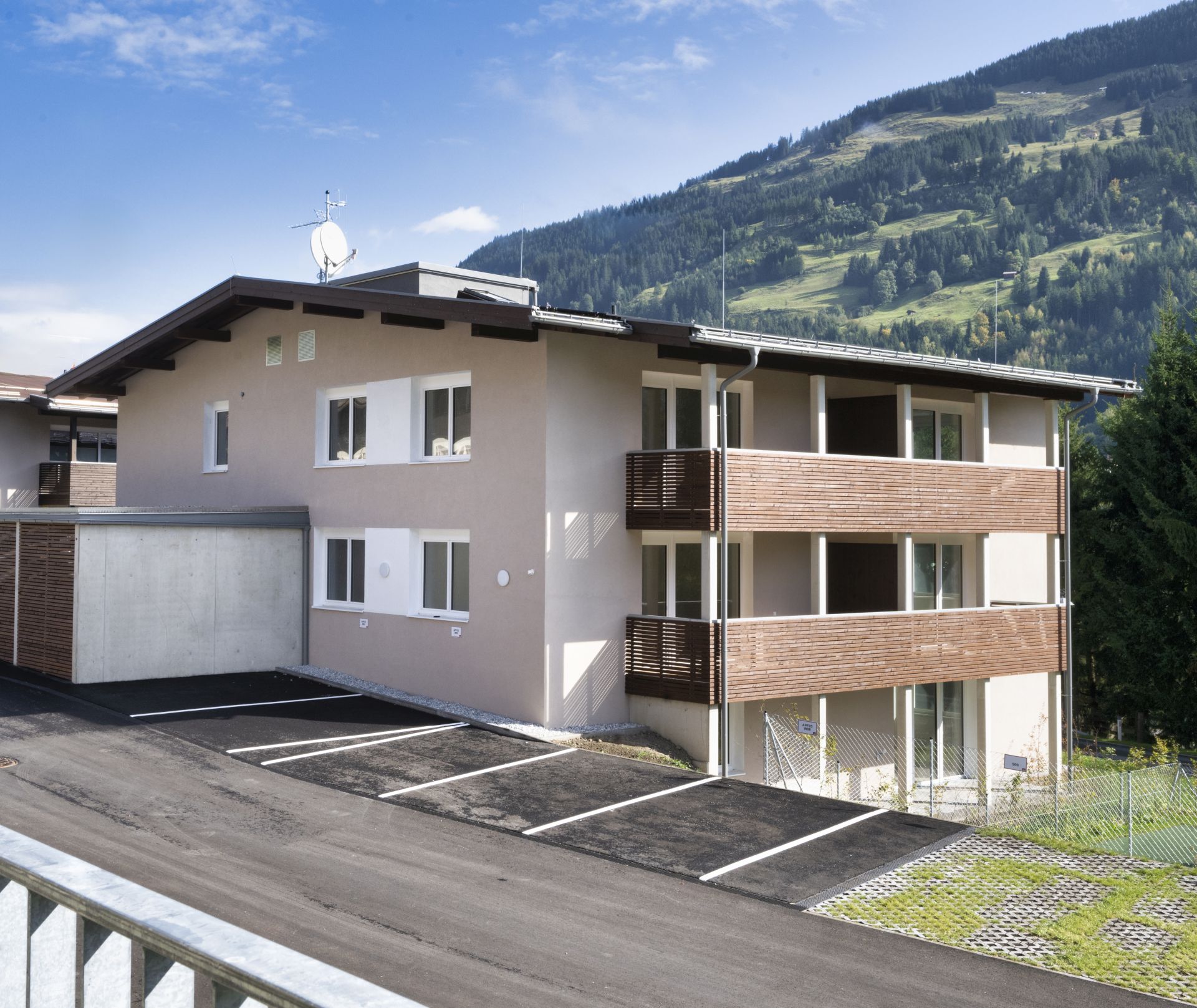 Die NEUE HEIMAT TIROL errichtete in Jochberg nach Abbruch bestehender Baukörper in einem Teilbereich der Südtiroler Siedlung eine neue Wohnanlage (Haus 2 mit 8 und Haus 3 mit 15 Mietwohnungen).