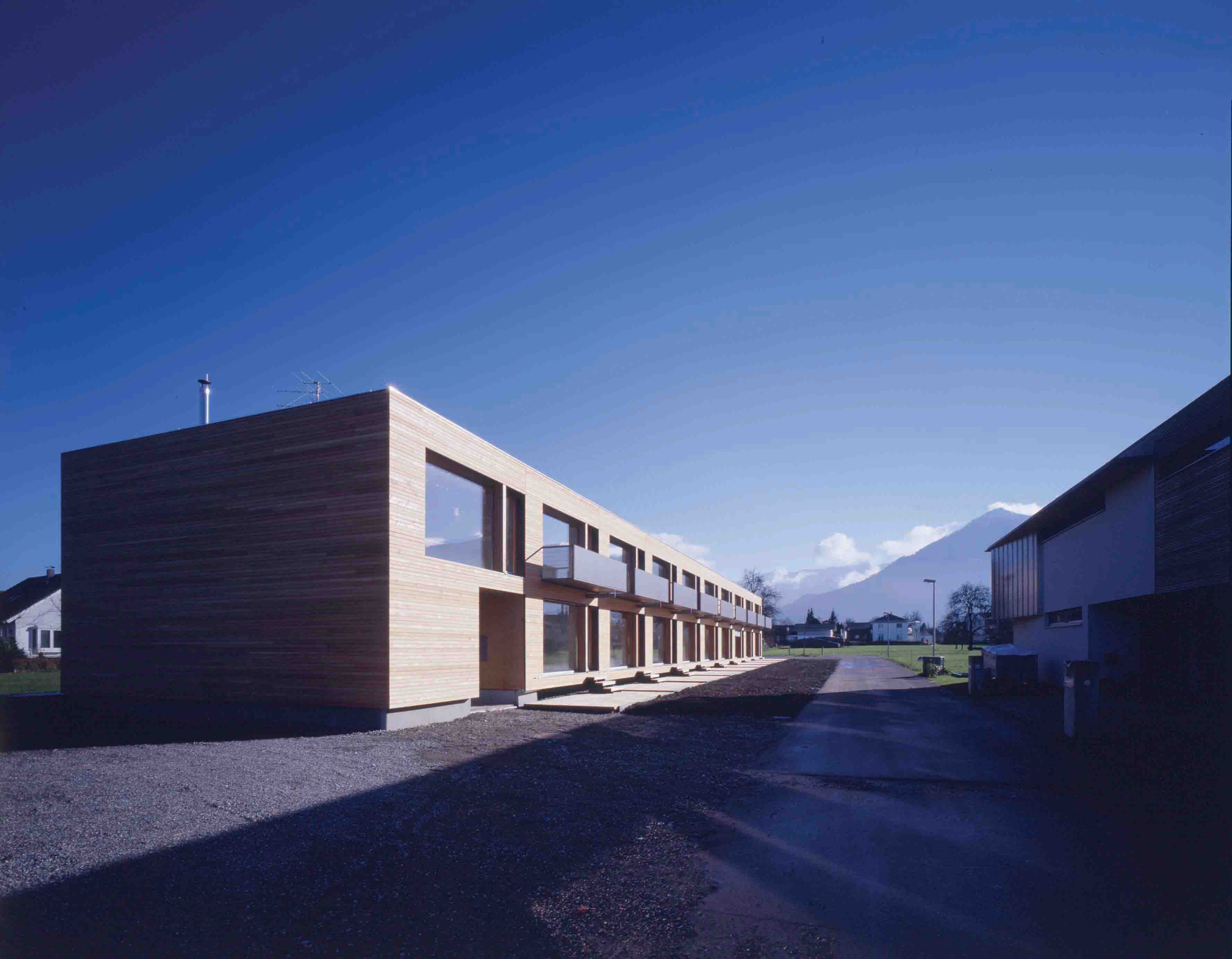 Passivreihenhausanlage aus Holz, luftbeheizt, Solaranlage zur Warmwasserbereitung