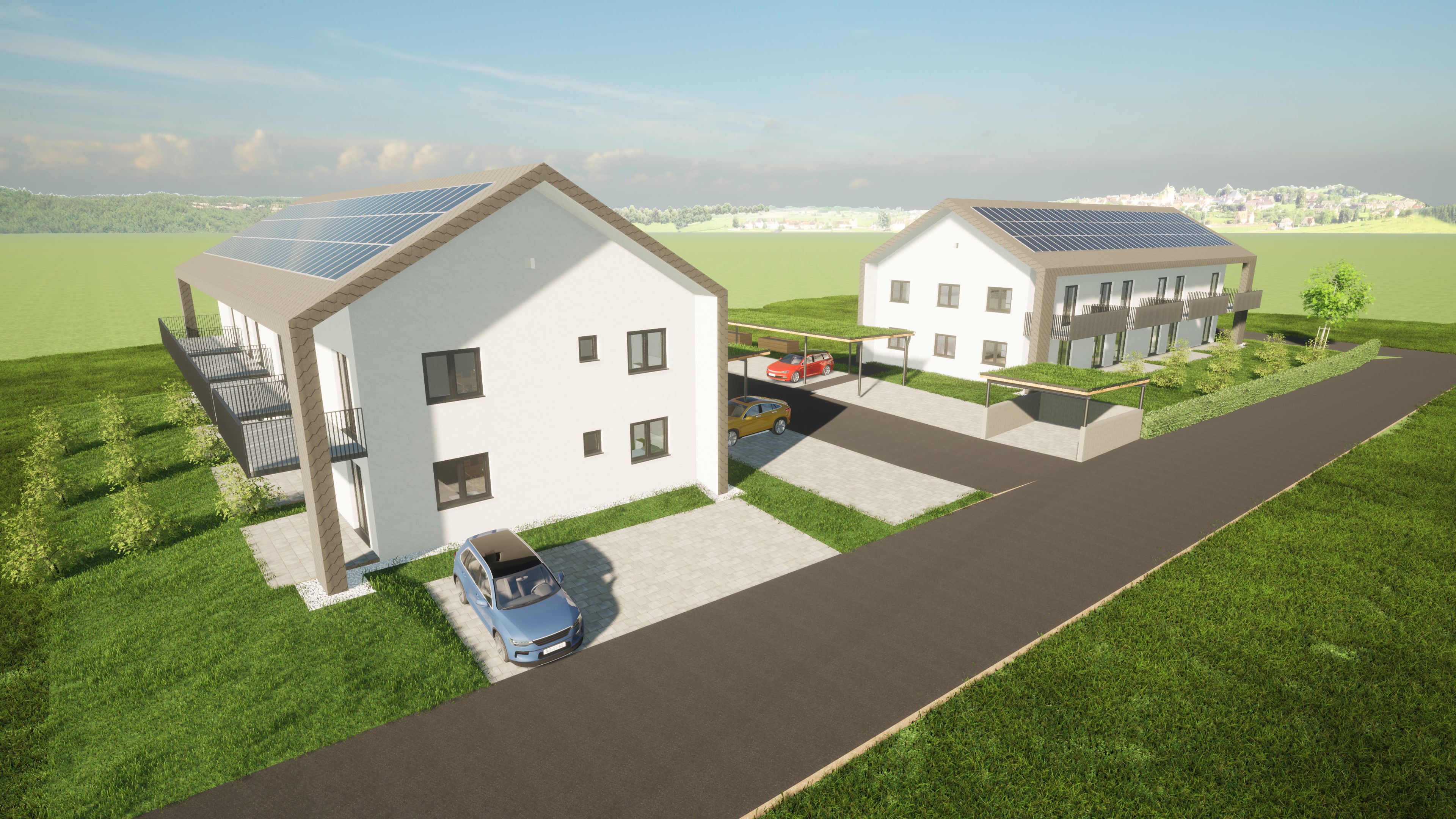 Neuerrichtung von 2 Wohngebäuden mit jeweils 8 Wohnungen, 2 PV Anlagen mit je 48 kWp, 16 überdachte KFZ Abstellplätze und 11 KFZ Abstellplätze im Freien sowie Geländeveränderungen
