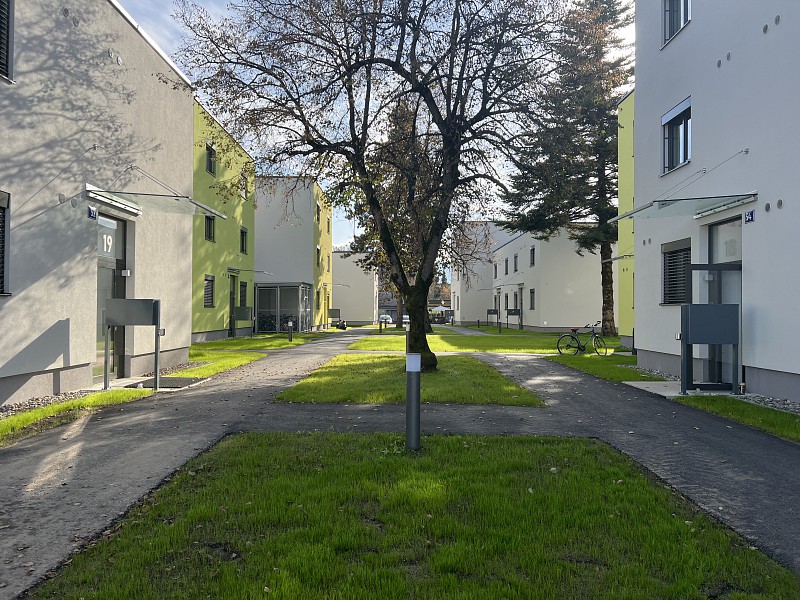 Umfassende thermische Gebäudesanierung mit Neuherstellung aller HKLS Installationen, Einbau einer Wohnraumlüftung mit Wärmerückgewinnung, neue Fenster mit aussenliegender Beschattung, Anschluss an die Fernwärme Klagenfurt, Bau von überdachten Fahrradabstellplätzen.