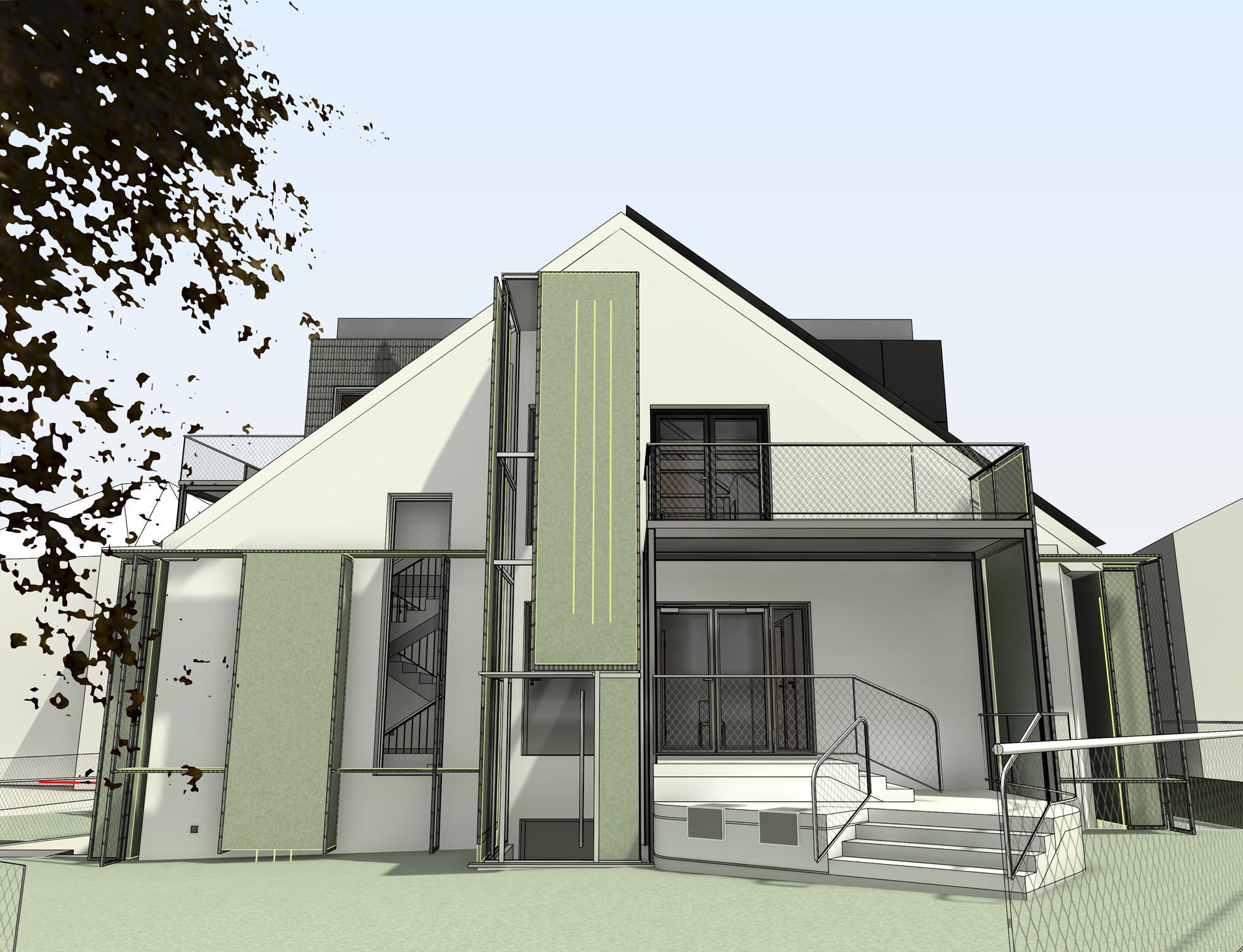 In Zusammenarbeit mit dem Architekturbüro Reinberg ZT GmbH unter der Leitung von Georg W. Reinberg sowie Expert*innen aus Bereichen Akustik, Energie- und Grünraumplanung, Haus-, Elektro- und Veranstaltungstechnik entsteht ein akustisch hochwertiges Gebäude, das durch Fassadenbegrünung, der Verwendung von Photovoltaikanlagen und Erdwärme (Wärme- und Kälteversorgung) bautechnisch höchsten Umweltstandards entspricht. Die Planung von Raum-in-Raum Konstruktionen der einzelnen Räume sowie des Konzertsaales garantiert eine akustisch hochwertige und unabhängige Nutzung der einzelnen Räume.