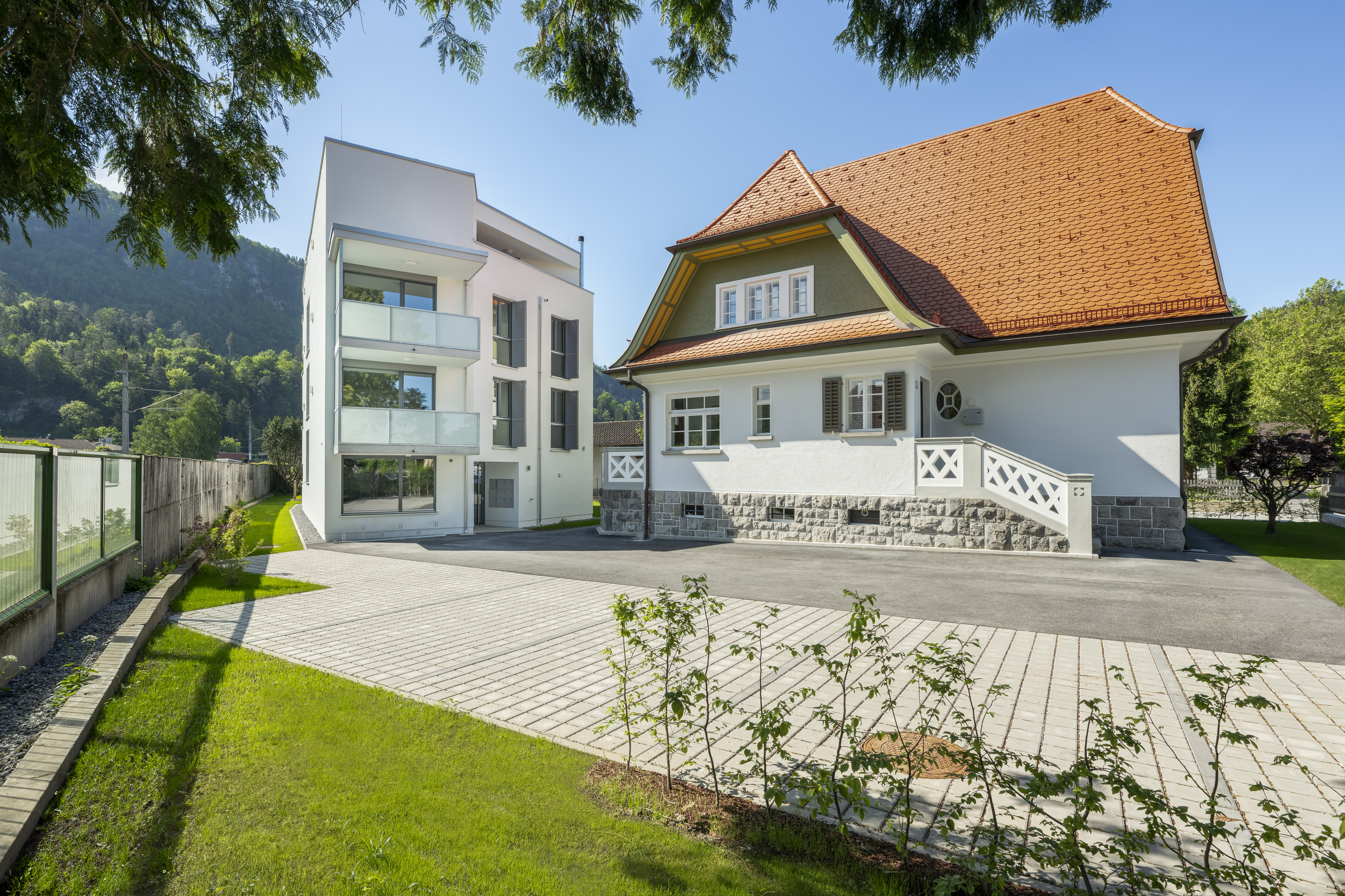 ausgeführt. Den Wohnungen im Neubau ist eine Terrasse oder ein Balkone zugeordnet. Die Wohnungen im Neubau sind über das zentrale, geschlossene Stiegenhaus auf kurzem Weg zugänglich. Es ist keine Aufzugsanlage (Lift) vorhanden.