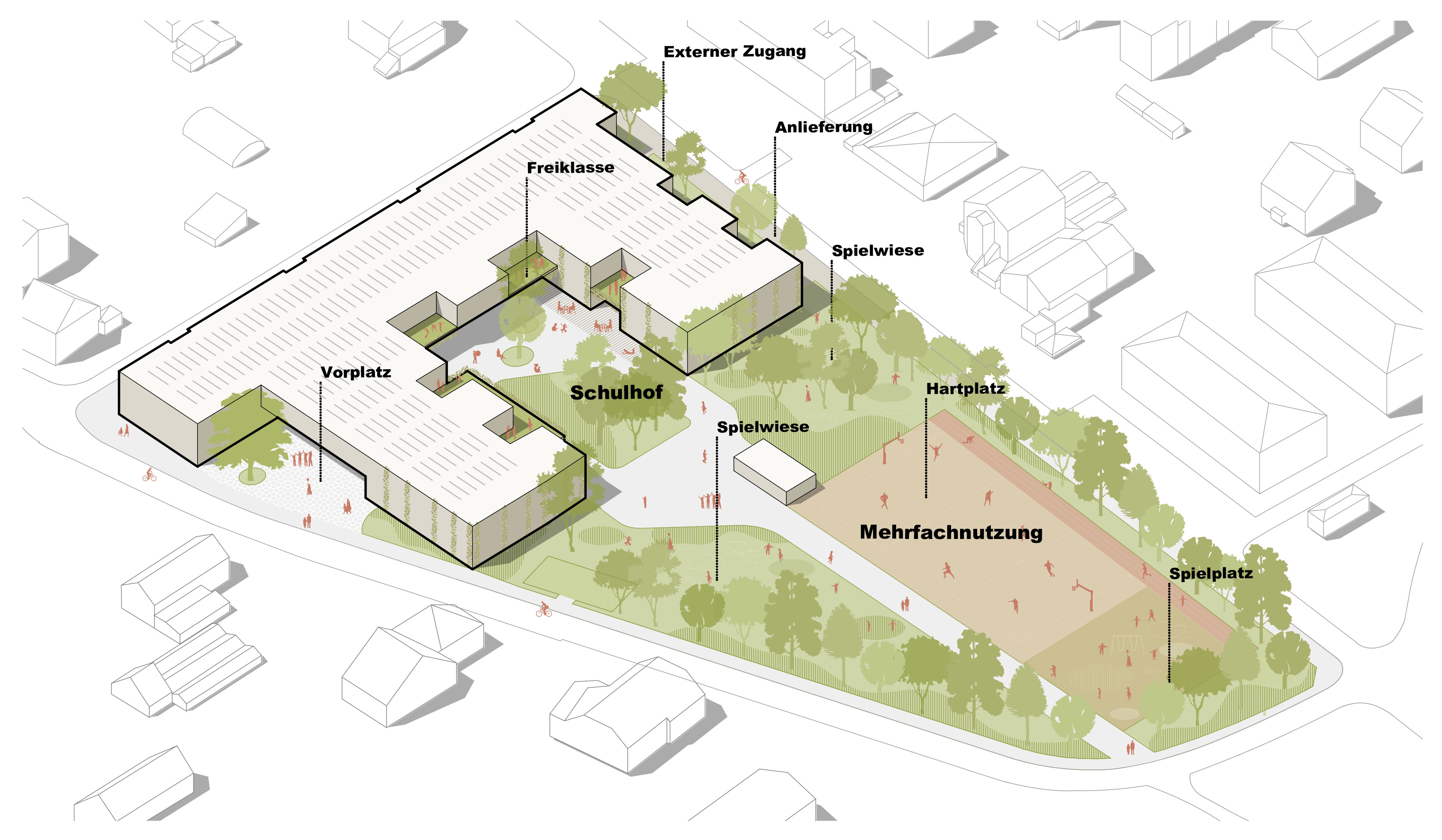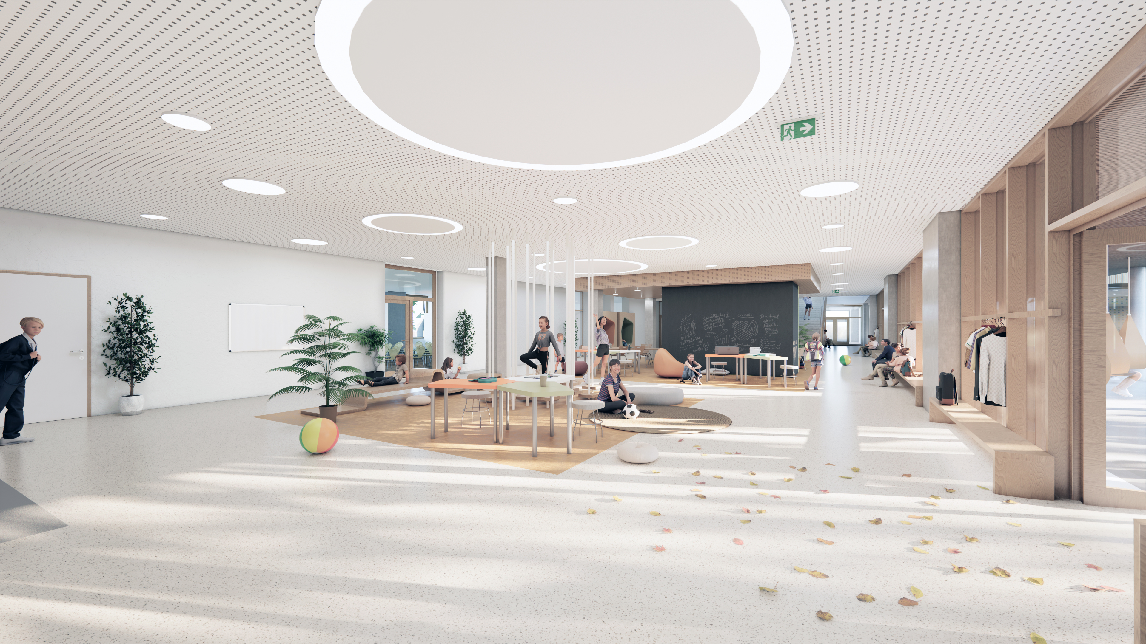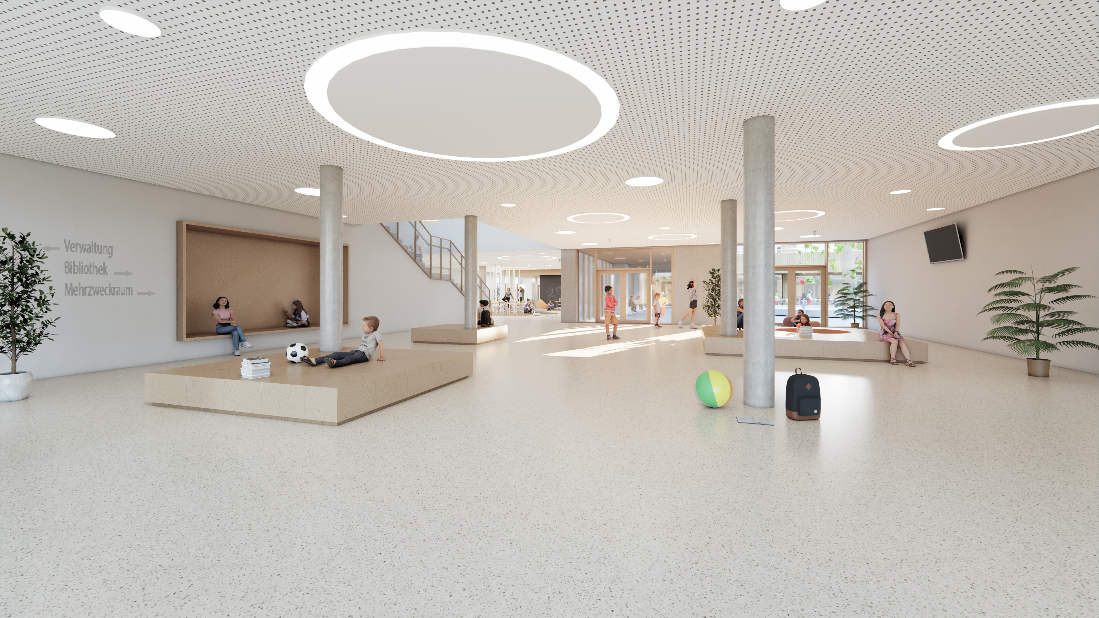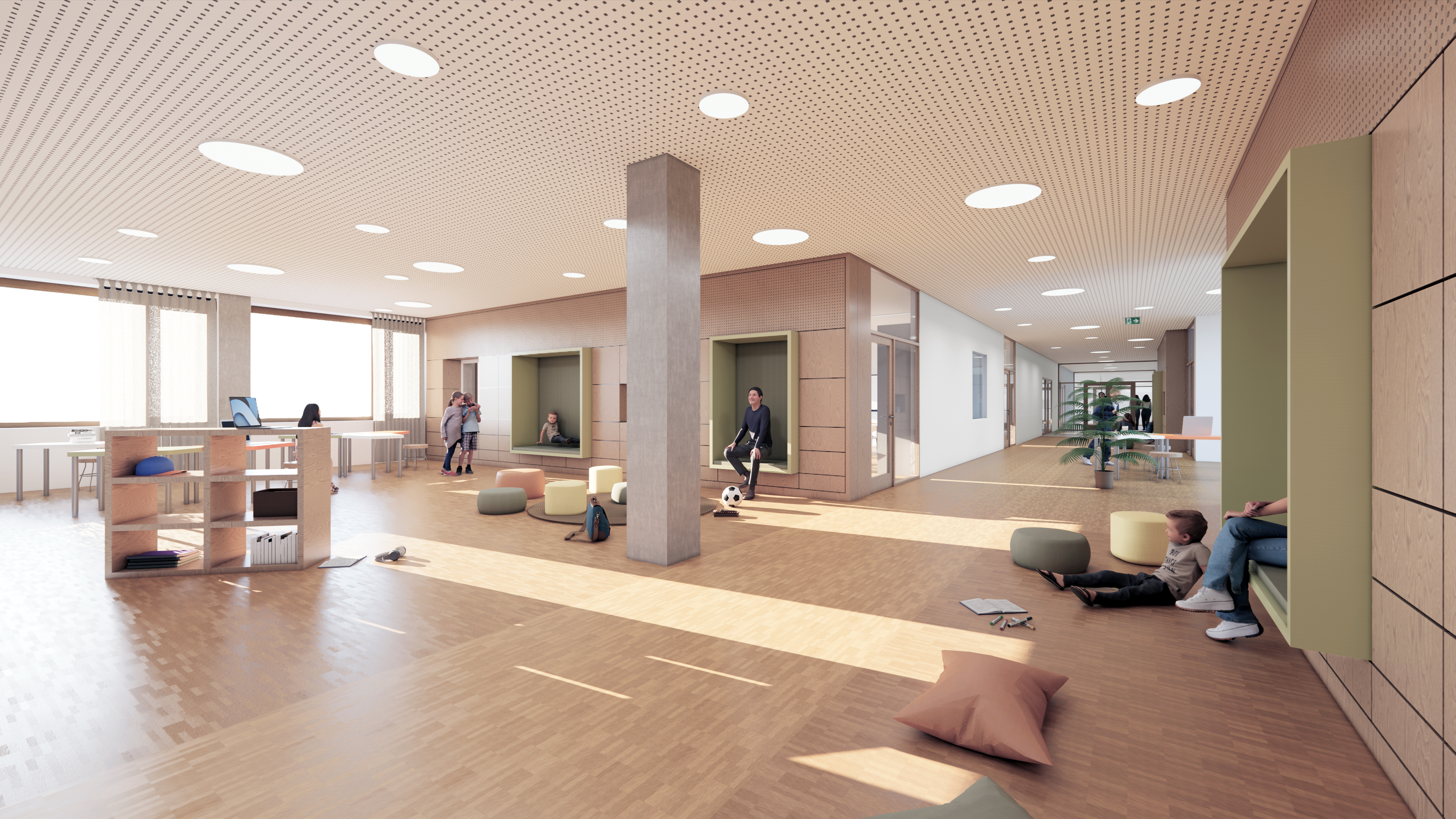 Die Planung umfasst die Sanierung und Erweiterung der Volksschule Dr. Skala Straße für etwa 525 Kinder im Alter von 6 bis 10 Jahren. Geplant sind 5 Bildungsräume für Schüler:innen mit erhöhtem Förderbedarf, 17 Ganztagesvolksschulräume, eine Bibliothek, zwei Therapieräume, eine Aufwärmküche, ein Speisesaal, eine Normturnhalle und ein Gymnastiksaal. Das Gebäude aus dem Jahr 1958, ursprünglich als Hauptschule konzipiert, wird saniert und erweitert, um die Kapazität von 14 auf 22 Klassen zu erhöhen. Die räumliche Struktur wird in ein modernes, clusterbasiertes pädagogisches Konzept umgewandelt. Eine neue Holzfassade und Fassadenbegrünungen verbessern das äußere Erscheinungsbild und das Mikroklima. Ziel ist es, die Freiflächen zu maximieren und den Baukörper kompakt zu gestalten.