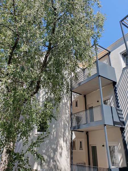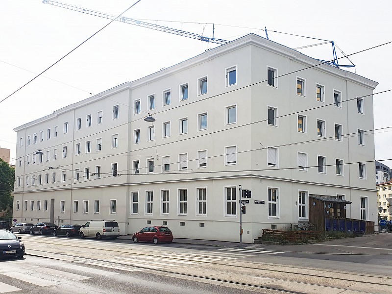 Die aus der Gründerzeit stammende Wohnhausanlage der ÖBB besteht aus 6 aneinander gebauten Einzelhäusern, welche um einen Innenhof gruppiert sind. Alle Wohnungsgrundrisse wurden komplett neu organisiert, teilweise wurden Wohnungen zusammengelegt. Die Fußbodenaufbauten wurden komplett erneuert um eine Fußbodenheizung einbauen zu können. Die Wärmebereitstellung aller neuen Wohnungen erfolgt zentral über hocheffiziente Luft-Wärmepumpen. Die Bereitung von Warmwasser erfolgt dezentral in den Wohnungen jeweils über einen elektrisch betriebenen Warmwasserspeicher. Das ganze Gebäude wurde bauphysikalisch mittels eines WDVS (18cm Dämmstärke) und neuen Fenstern ertüchtigt. Als zusätzliche Aufwertung wurden im Hof 7 Balkontürme und 2 Aufzugszubauten errichtet.