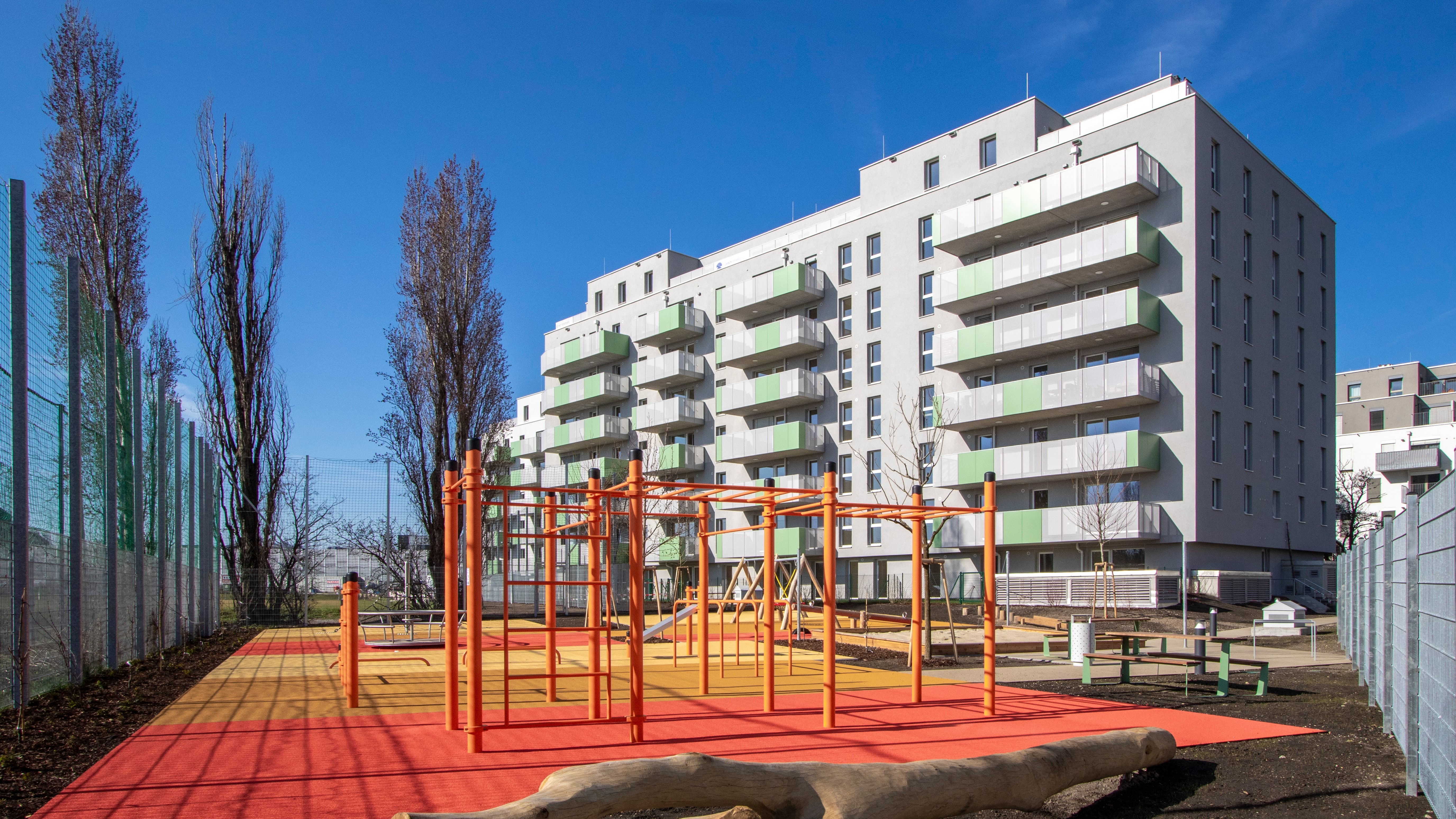 Von insgesamt 108 Wohnungen wurden 75 gefördert angeboten. Die Hälfte bzw. 38 Wohnungen davon wurden als SMART Wohnungen geschaffen. Die Mischung von freifinanzierten und geförderten Wohnungen sorgt für ein nachhaltig soziales Quartier.
