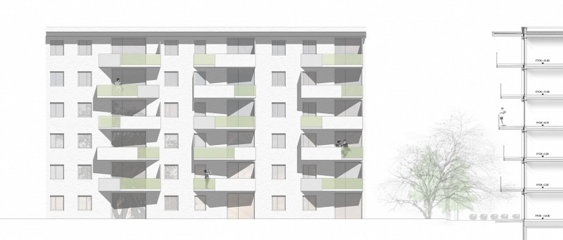 Reconstructing der Wohnhausanlage „Anzengrubergasse 32, 34 und 36 KG Nr. 72168 mit 158 Wohnungen in 4 Baukörperm und zwei Tiefgaragen für 141 Pkws.