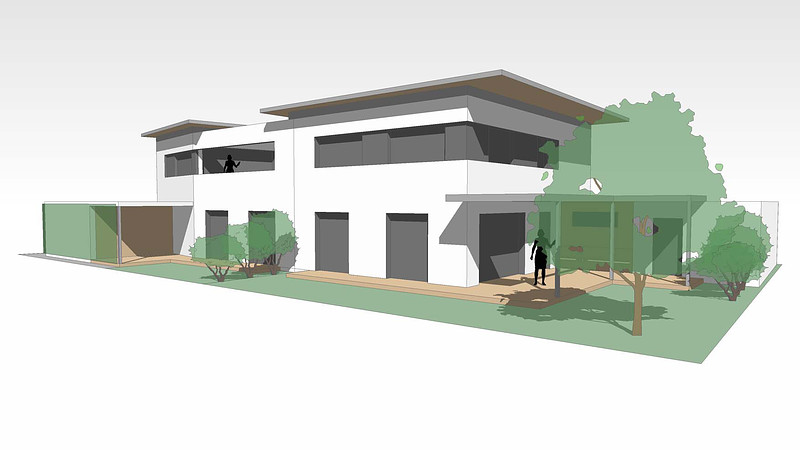 Das Gebäude wurde so auf dem Grundstück positioniert, dass ein späterer Anbau einer Doppelhaushälfte nordseitig möglich ist. Die Planung der zweiten Haushälfte wurde gleichzeitig mit der Planung des EFH durchgeführt.
