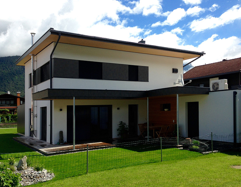 Neubau eines Einfamilienhauses in Holzmassivbauweise. Die Grundrisse sind kompakt, die Erschließungsflächen minimiert. Auf eine Unterkellerung wurde bewusst verzichtet. Ausreichende Abstellmöglichkeiten bieten ein Hauswirtschafts-/Technikraum, die Garage und das Carport.